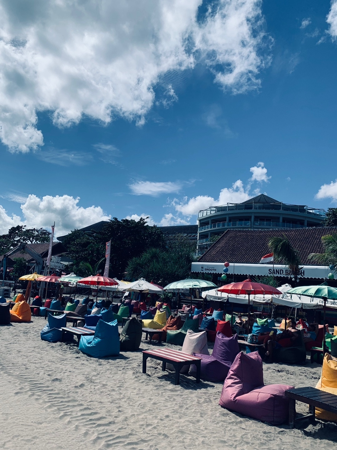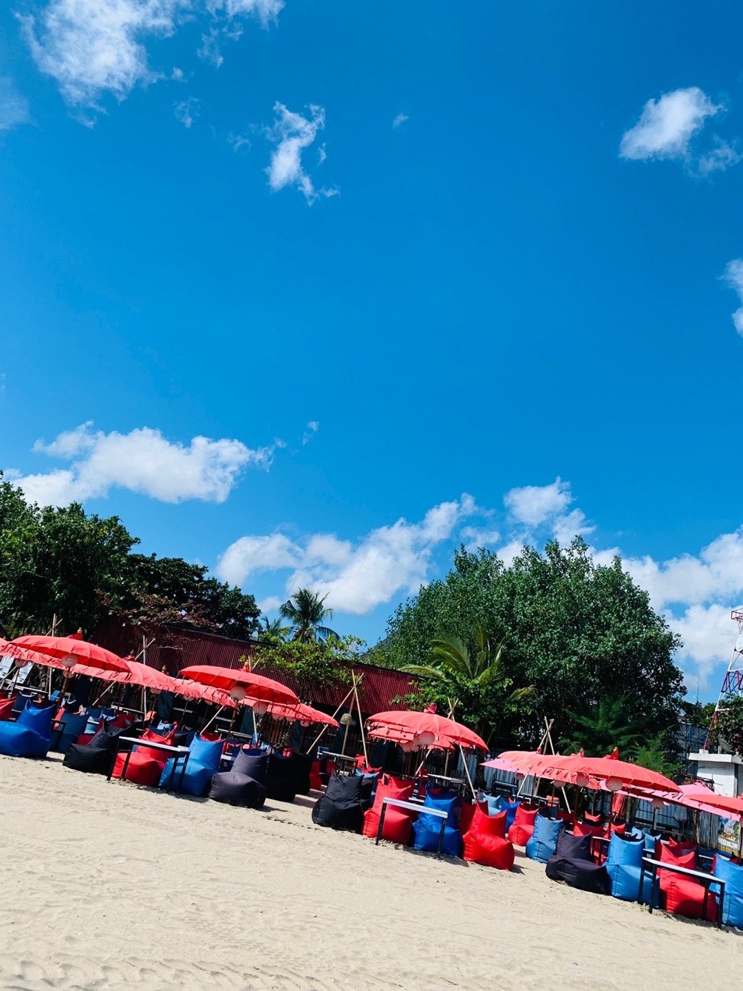 모래사장 위에 무심히 놓여있는 형형색색의 빈백들이 더블식스 비치의 포인트였다. 오른쪽으로 계속 가다 보니 인터넷에서 봤던 익숙한 곳이 나타나 덥기도 하고 시간도 잠깐 비어서 자리를 잡고 빈땅 레몬과 나초칩을 시켰다. 아이가 끝나기 전까지는 돌아가야 해서 한 30분 앉아있었나. 그 30분의 시간을 내 머릿속에 마음속에 고이고이 담아두었다가 한국에 돌아가 문득문득 힘든 날 꺼내보기로 하고 언제나 아쉬운 혼자만의 시간을 종료했다.