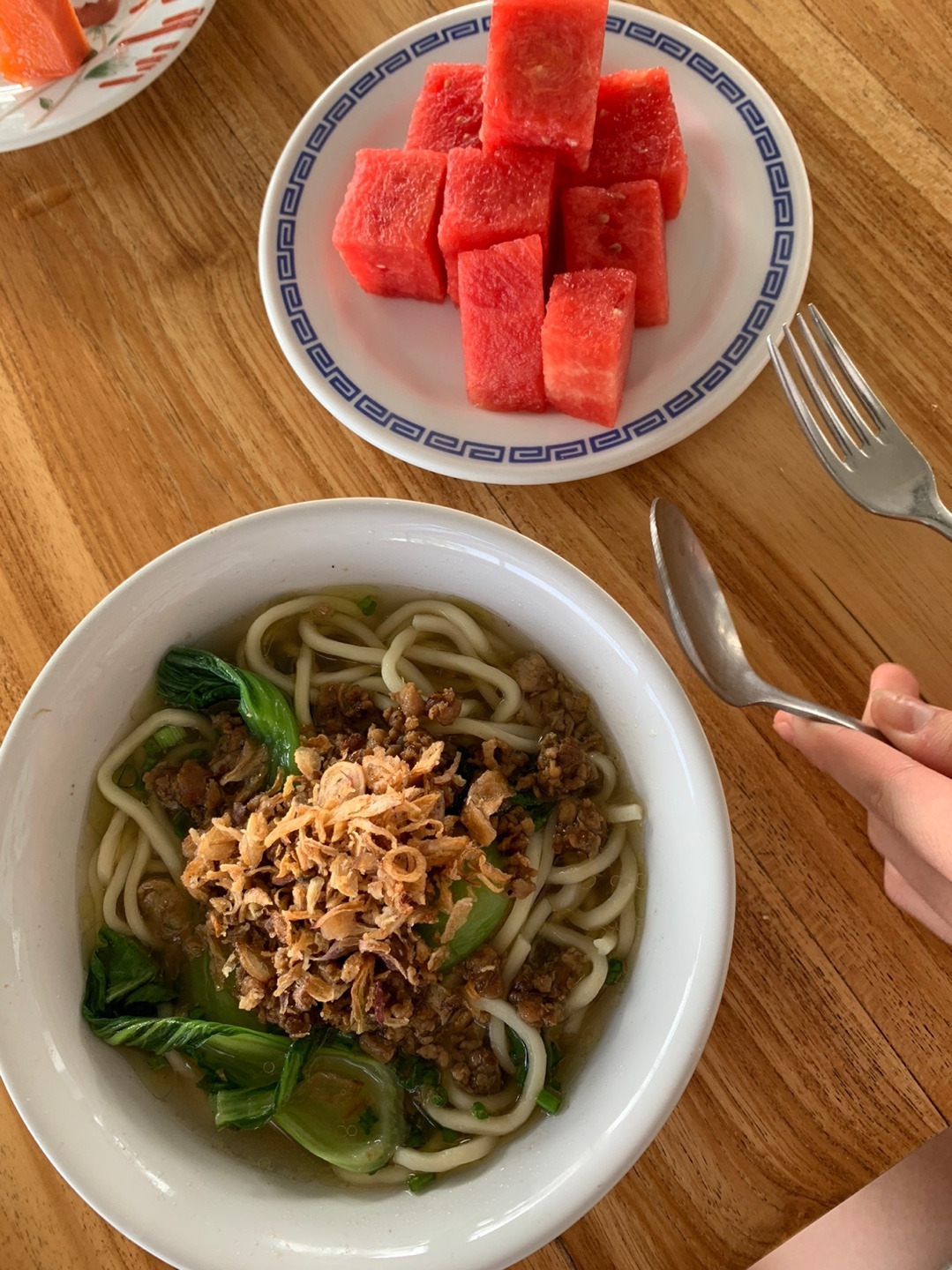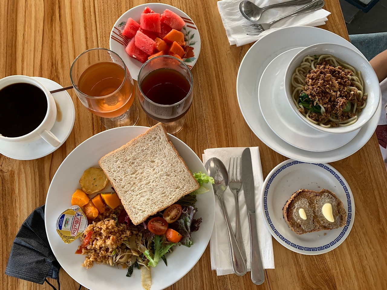 그런데 오늘 조식 메뉴에 그동안에는 볼 수 없었던 메뉴가 추가되었는데 바로바로 누들. 불어 터진 볶음면이 아니라 국물이 있는 누들. 면만 쌀국수면이 아니었지 국물은 쌀국수 또는 고기국수의 맛이었다. 처음에 딸이 가져온 걸 한입 먹어보니 맛있어서 나도 한 그릇 가져다 먹었다. 뭐야 왜 체크아웃 하루 남겨둔 날 먹을만한 메뉴가 나온 것이야?