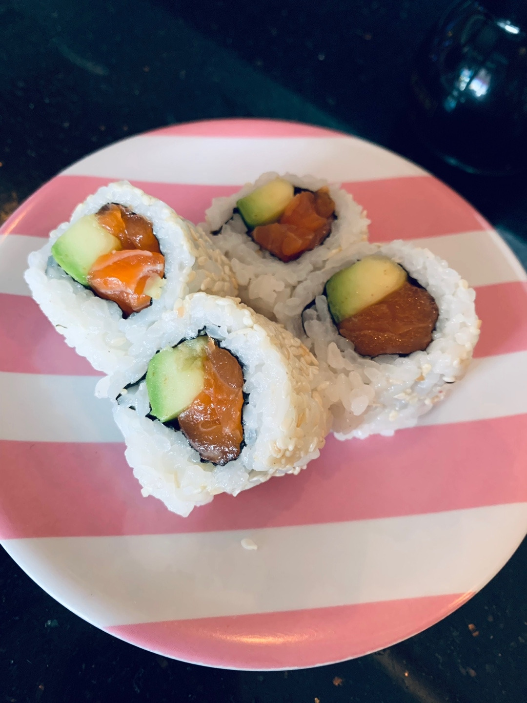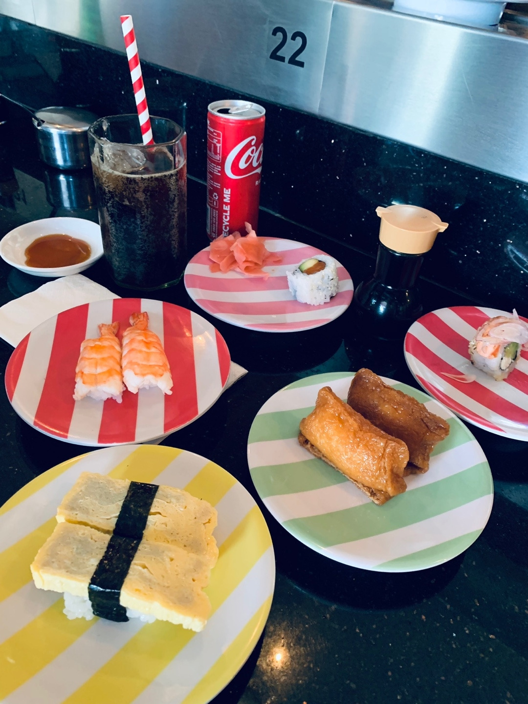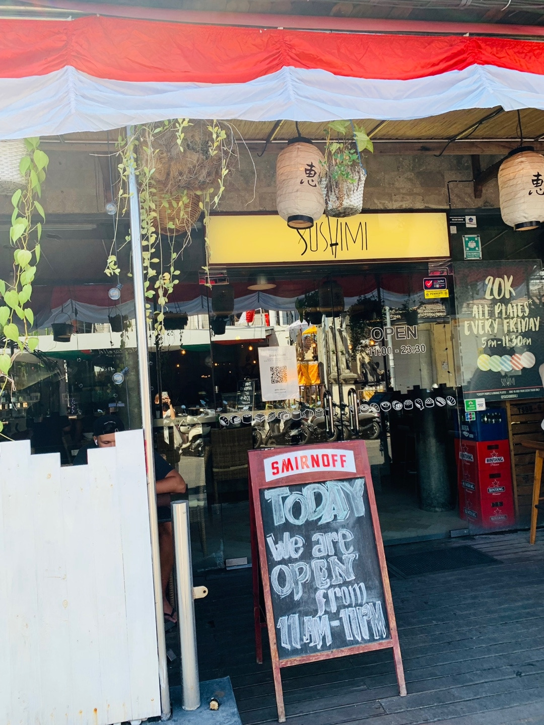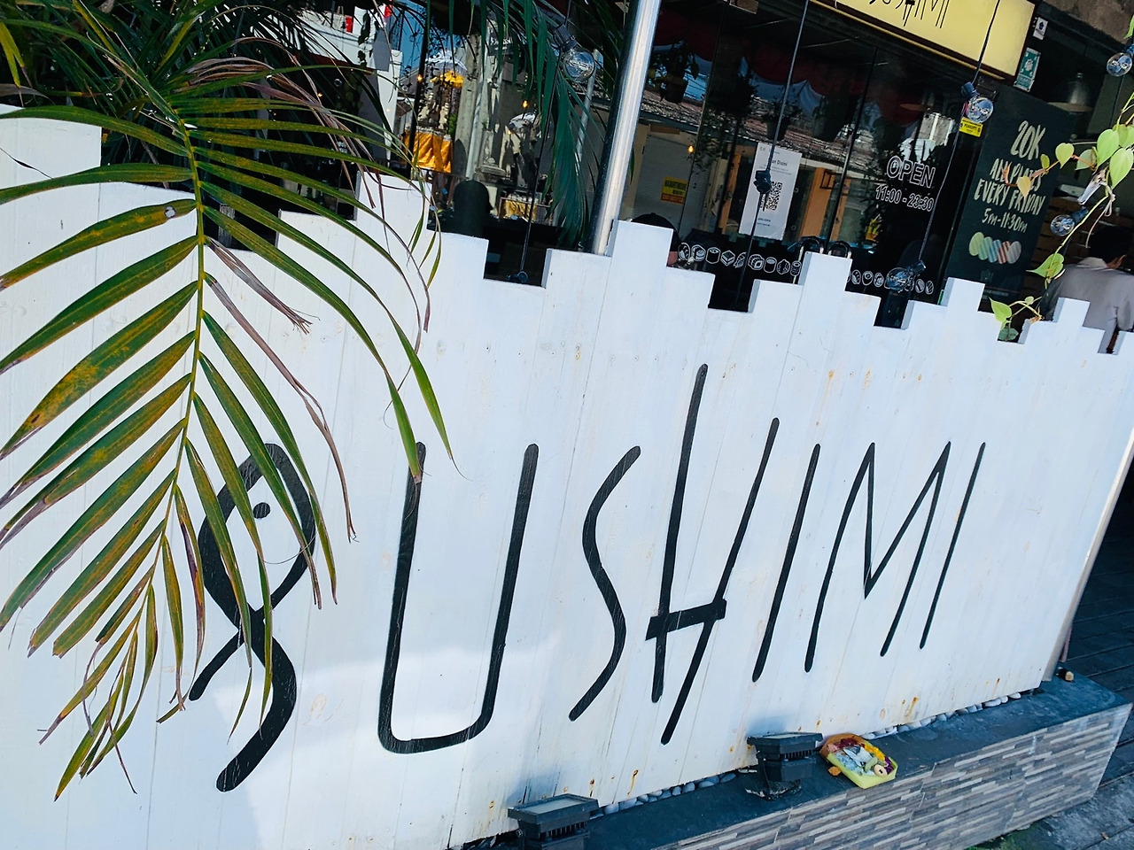 오전에 남편은 홀로 수영 & 태닝을 하고, 딸과 나는 방에서 쉬면서 이것저것을 한 후 12:30 즘 택시를 타고 스미냑으로 향했다. 목적지는 SUSHIMI라는 회전초밥집. 실제로 가보니 회전초밥집은 아니고 회전롤집이었다. 그래도 주문하면 초밥이 나오기는 하는데, 회의 종류가 많지 않아서 아쉬웠지만 김치우동과 스시 샐러드는 먹을만했다.