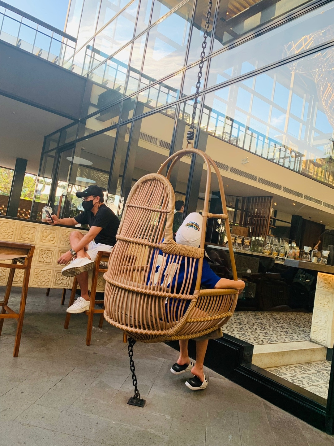 같은 공간 다른 느낌. 혼자 걸을 때와 함께 걸을 때는 달랐다. 혼자는 혼자여서 좋았지만 어딘지 조금 긴장되고(외국이어서 더) 살짝 지루했다면 함께는 든든해서 마음이 편하고 덜 지루했던 거 같다. 그렇게 도착한 스타벅스도 마찬가지. 같은 공간인데, 아마 두 번째 방문이어서 그런 면도 있었겠지만 어딘지 더 편안했다. 그래서 혼자 왔을 때는 미처 담지 못한 부분을 사진으로 더 남기고, 3종류의 음료를 나눠 먹었고, 그날은 보이지 않았던 그네도 타보고, 썩 마음에 들지는 않지만 찍고 싶은 곳에서 인증샷도 남겼다.