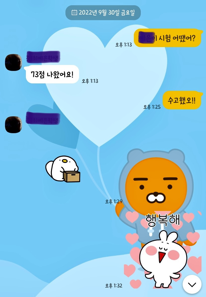 심지어 최근에 중고등학생들 중간고사 기간이었음에도 불구하고, 학생이 적어서 이번에 시험 보는 학생이 3명뿐이기도 했지만, 예전에 비해 나의 수업 준비가 턱없이 부족했던 것이 사실이다. 그래도 다행히 (성적이 중위권인) 중학생 2명은 기대 이상의 성적이 나왔지만, (성적이 상위권인) 고등학생 1명은 수학 시험 당일 아침에 과호흡이 와 시험을 치르지 못하는 일이 발생하였다. 물론 그 과호흡의 원인이 나 때문인 것은 아니겠지만, 나도 아주 조금은 영향을 미친 것이 아닌가 싶어 계속 마음에 걸렸다. 오늘 그 학생과 수업이 예정되어 있는데 이야기를 잘 들어봐야겠다.