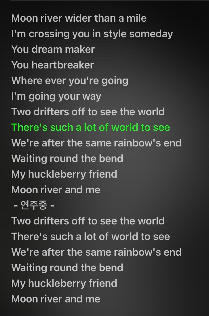 아무튼 이 영화는 거의 우연히 보게 된 셈이지만, 생각보다 오래오래 기억될 것만 같다. 그리고 영화 속에서 오드리 헵번이 불렀던 <문리버>의 가사도 오래오래 곱씹게 될 것만 같다.
