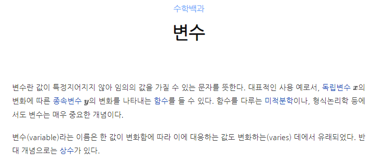 다시 제목으로 돌아와 변수와 상수에 대해.