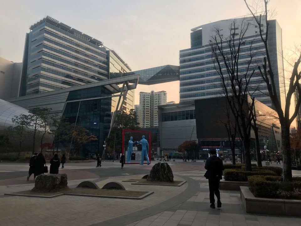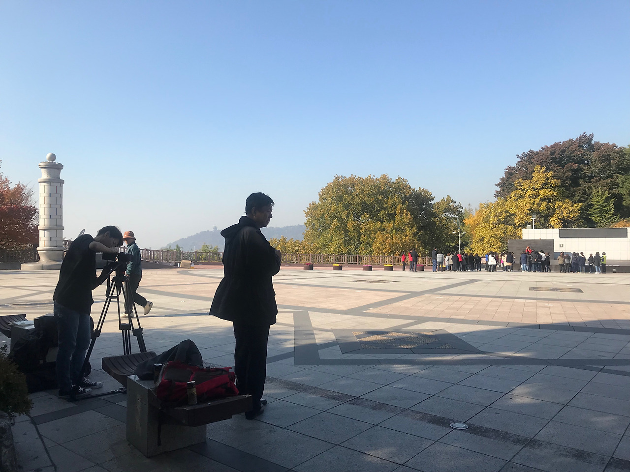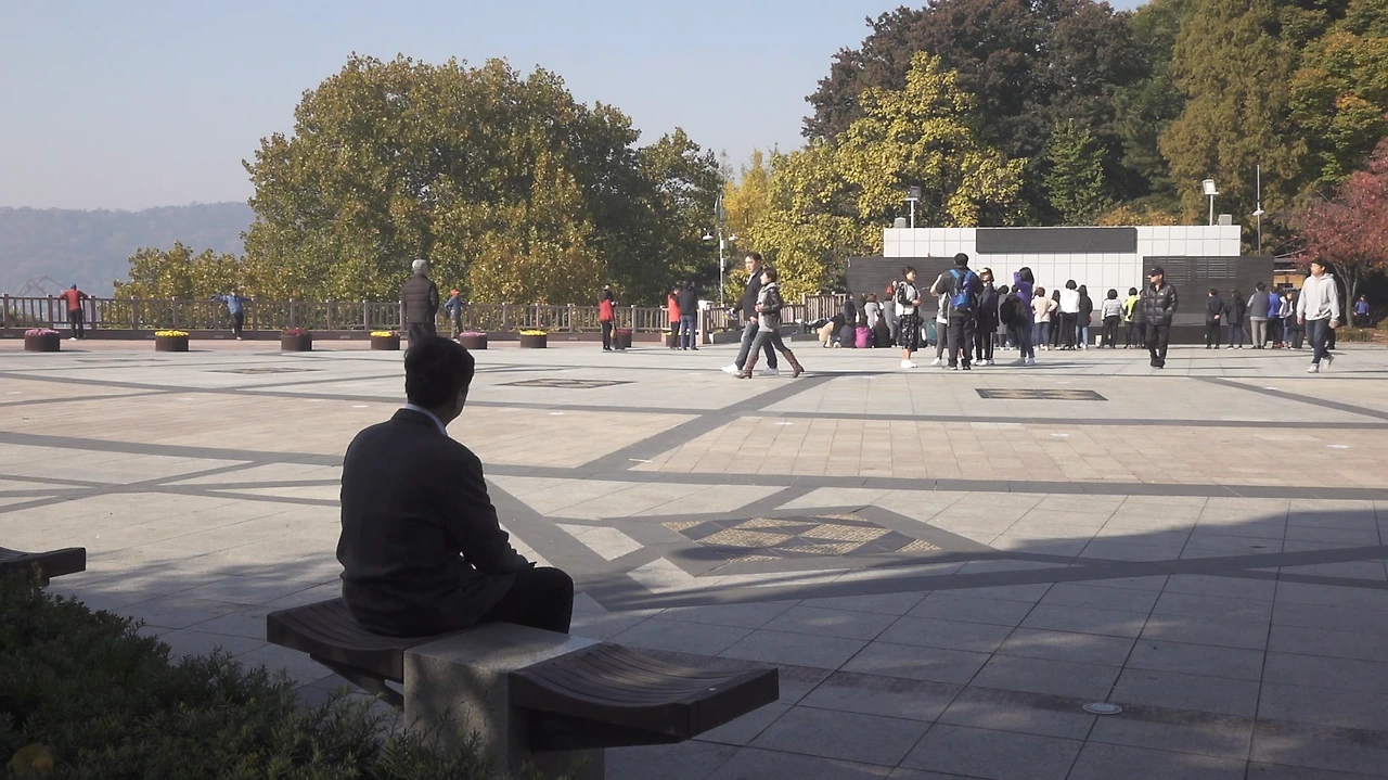 광장의 풍경은 따로 연출한 것이 아니다. 오전에 모여서 촬영 준비를 하는데 그날 무슨 행사가 있는지 자유공원 무대에서 사람들이 매스게임 같은 걸 했다. 지나다니는 노인들, 산책을 나온 가족들, 고되게 일하고 휴일에 나와 매스게임 하는 노동자들. 자유공원다웠다.