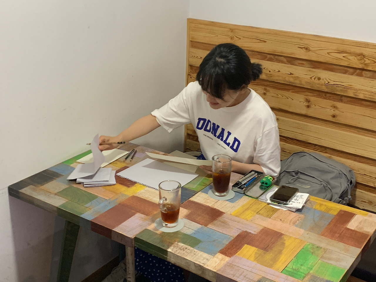 강정아 작가님은 합정에서 '안티 카페 손과 얼굴'이라는 공간을 운영하는 주체의 한 명이었고, 저도 안티카페를 종종 이용했던 관계로 부여에서 뵙기 전부터 그를 (사장님으로) 알고 있었습니다. 제가 군역을 치르는동안 안티카페는 정리가 됐고, 그 즈음의 모습이 전유동의 싱글 <디플로도쿠스> 뮤직비디오에 기록되기도 했죠. 그러한 과정을 지켜봤던 한 명으로서 강정아 작가님과 이렇게 긴밀한 친분을 갖게 될 거라고는 생각을 못했어요. 그의 놀라운 실천력이 위에 언급한 설명할 수 없는 흐름들을 상상하고 실천하는 추진력으로 작용합니다.