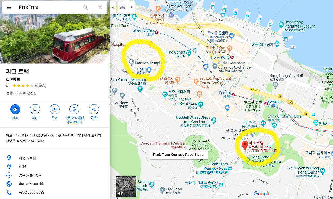 만모사원 앞에서 택시를 타고 빅토리아 피크트램(山頂纜車; 산뗑람체; Peak tram)으로 향했습니다.