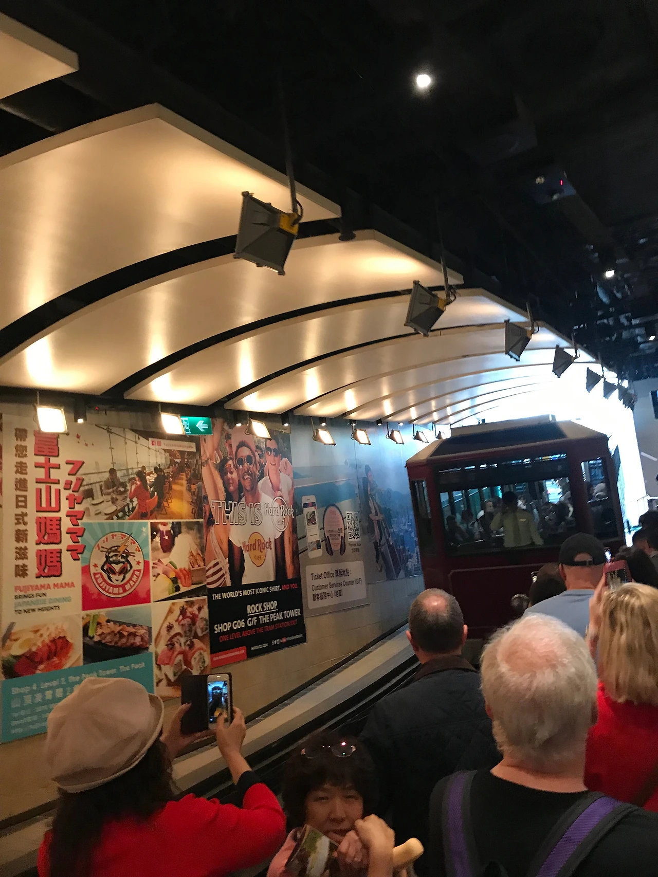 아래 사진은 산뗑람체(피크트램을 광동으로 산뗑람체라고합니다.)가 도착했을 때 사람들이 트램을 찍는 모습 : )