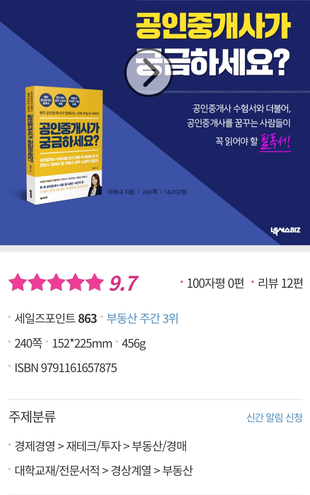 공인중개사 수험서를 보기 전에 꼭 읽어야 할 책반드시 알아야 할 부동산 실무 노하우 대공개!베테랑 공인중개사 이하나 작가의 『공인중개사가 궁금하세요?』는 공인중개사 시험 준비에서부터 상담, 계약 등 공인중개사에 관한 다양한 상식을 알려주는 책이다. 2018년 공인중개사 시험 응시 인원은 13만 명, 결코 적은 숫자라 할 수 없는 인원...