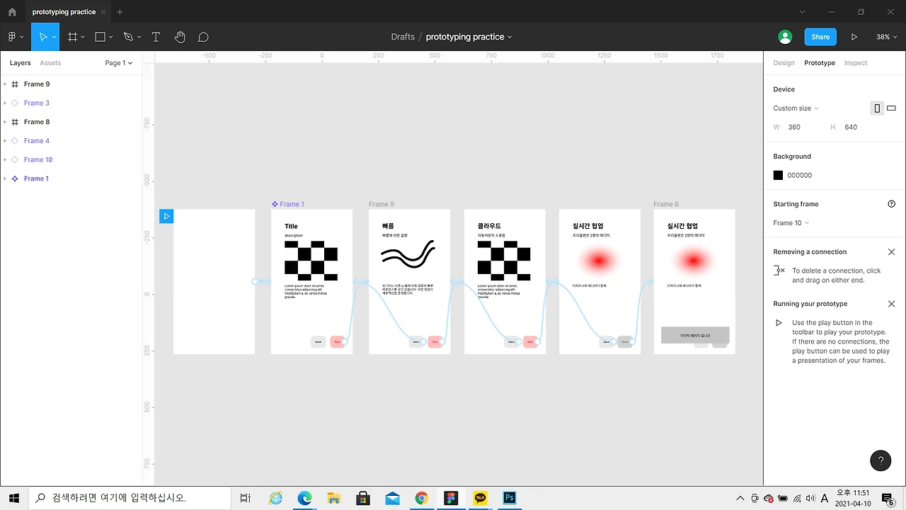 프로토타이핑. 웹디자인, uxui 디자인의 가장 기초적인 단계지만 꼭 제대로 알고 가야 하는 작업임은 분명하다. 첫 단추를 잘 꿰어야 마지막 단추까지 잘 맞출 수 있는 것처럼 기본기가 단단한 디자이너가 되어야겠다고 오늘도 다짐하는 중이다.