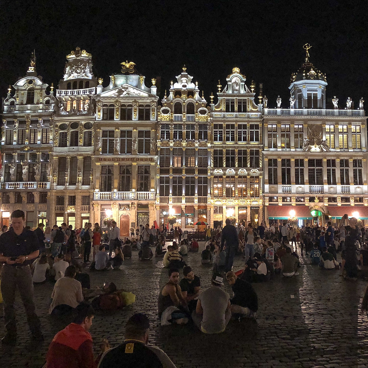 브뤼셀 관광지 중 유일하게 궁금하긴 했던 그랑플라스. 한밤중인데도 대낮인 양 밝았다. 어마어마하고 휘황찬란해서 입이 떡 벌어지긴 했는데 딱 거기까지였다. 놀라움 이상의 어떤 것은 아닌. 한정된 공간 안에 워낙 많은 사람들이 모여있다 보니 생각보다 질서 정연한 모양새는 아니었다. 어디나 사람 사는 곳은 다 똑같구나 싶었다.