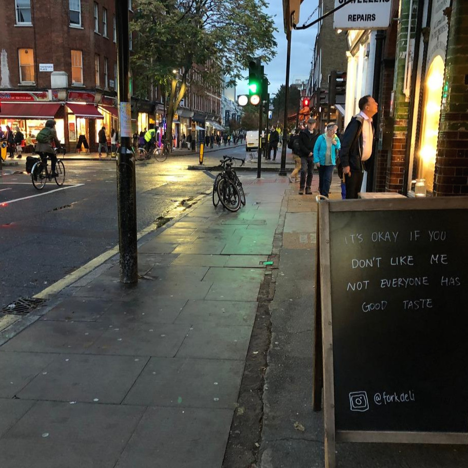 런던에서는 좀 차려입는 게 좋다고 조언해준 지인들의 말이 떠올랐다. 여기 사람들은 그냥 친구 만날 때나 놀러 갈 때도 어느 정도 옷을 갖춰 입는 편이기에, 혼자 너무 여행객처럼 입으면 자신이 너무 초라해 보일 수 있다고 했다. 그냥 웃어넘겼지만 막상 와보니 확실히 다른 도시와는 다르긴 하다. 이 거리에서 제일 캐주얼하게 입은 사람, 나야 나.