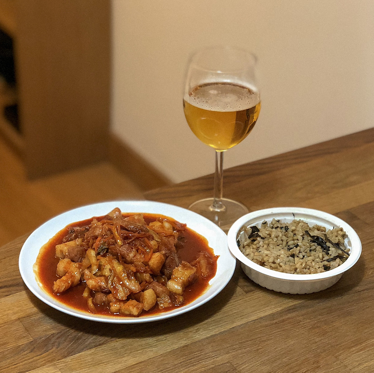 런던 와서는 거의 저녁 해 먹으려고 하루하루를 보내는 듯하다. 남은 삼겹살을 고추장 양념에 잠깐 재워놓고, 남은 샐러드용 야채를 넣고 볶았더니, 조금 어설프지만 맛은 그럴듯한 한식 한상이 완성됐다. 너무 맛있어서 혼자 밥도 볶아 먹고, 맥주도 쭉쭉 들이켰다.