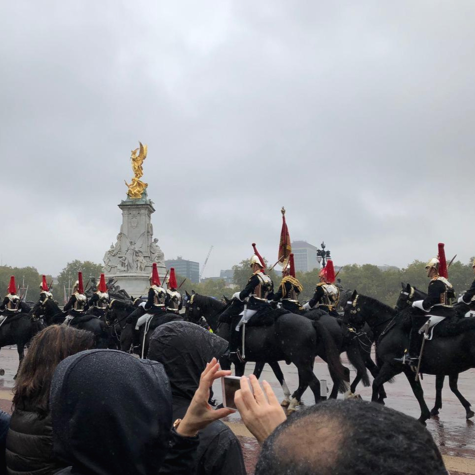 알고 보니 버킹엄 궁전 가는 길. 마침 근위병 교대식을 하는 시간이었나 보다. 맞아, 이런 게 있었지. 이거 보려고 일찍부터 오는 사람들이 많다고 했지. 뒤늦게 생각났다. 교대식 같은 거엔 그만큼 관심이 없었다는 거다. 온 김에 볼까 했는데 사람이 많아 잘 보이지도 않고, 계속 비 맞고 있기도 힘들어서 한 3분 정도 보다가 미련 없이 떠났다.
