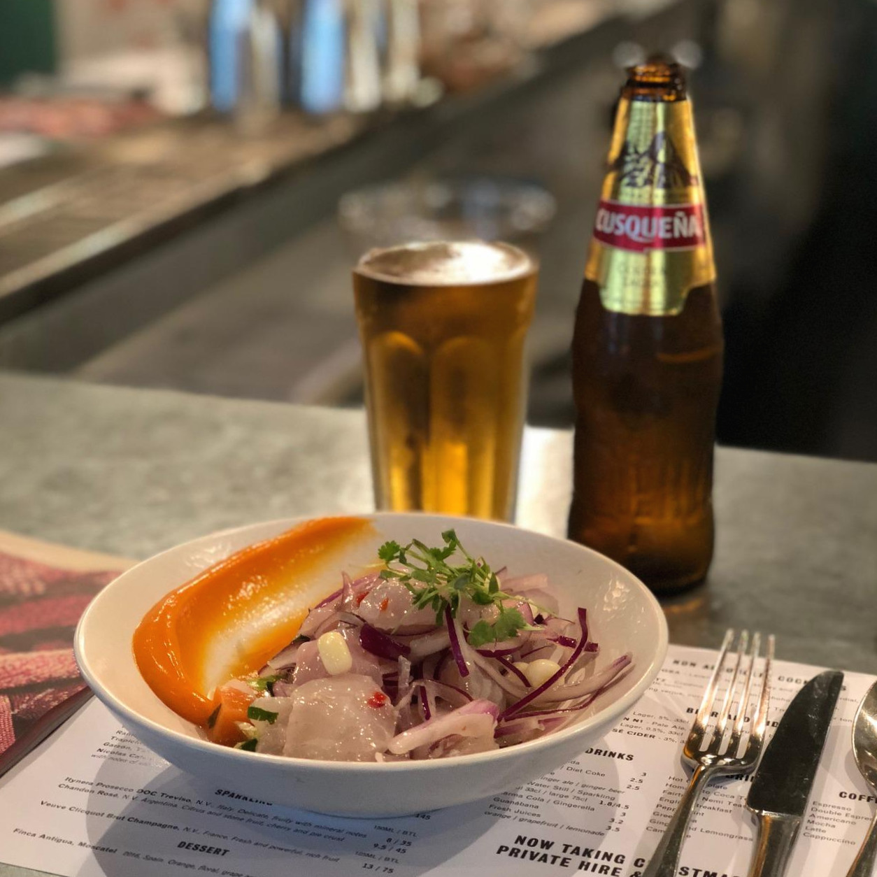 일정 주기로 런던에서 핫한 외국 음식 트렌드가 있는데, 지금은 페루 음식이 뜨고 있다고 책에서 본 적 있다. 한국에서는 먹어보기 힘들 것 같아 오늘 점심은 페루 음식 레스토랑에서 세비체를 먹으러 갔다. 회를 좋아하지만 세비체는 상상 이상으로 신 맛이 강해 먹기 힘들었다. 식초로 추정되는 소스를 최대한 덜어내고 먹었지만, 결국 회만 겨우 건져 먹고 양파는 거의 다 남겼다.