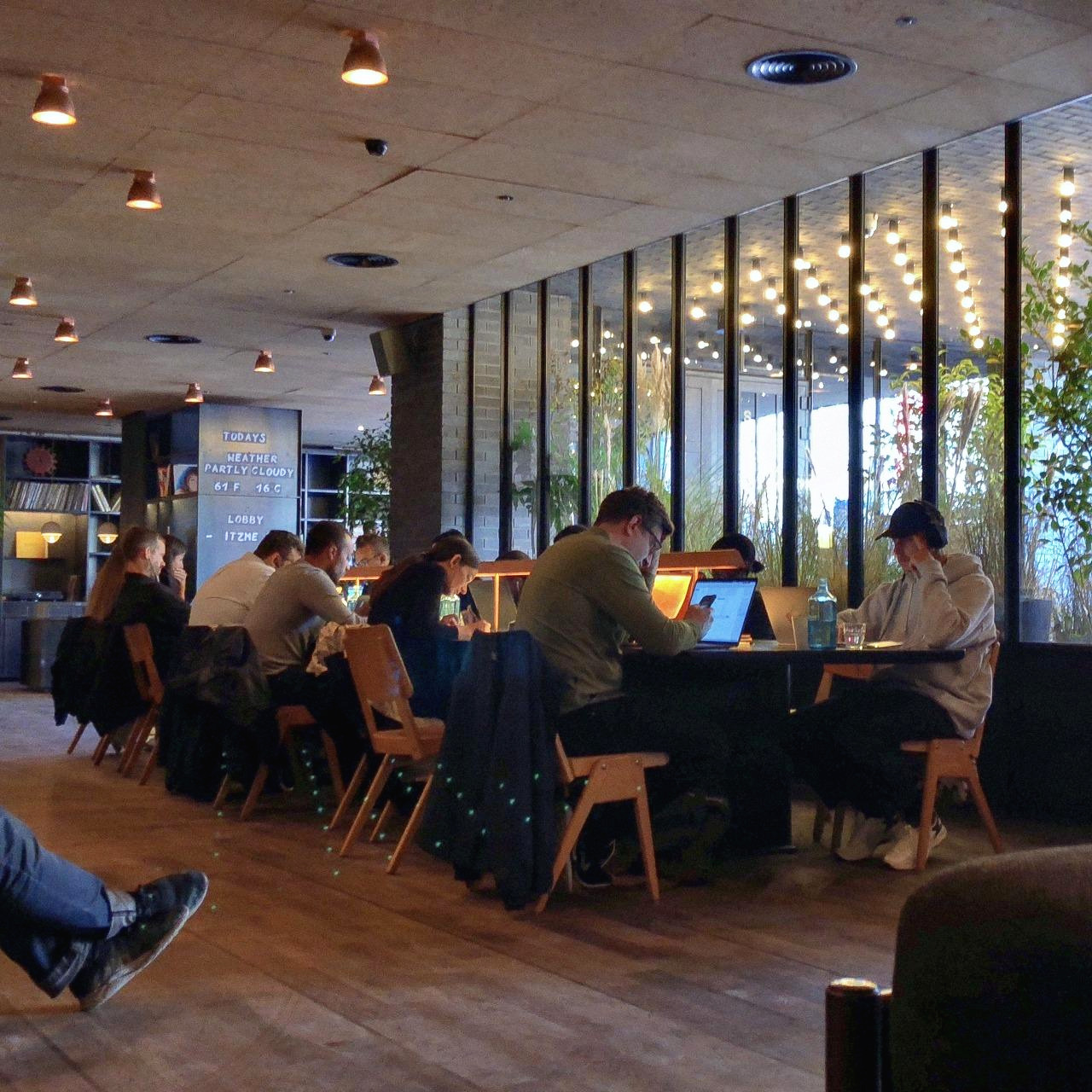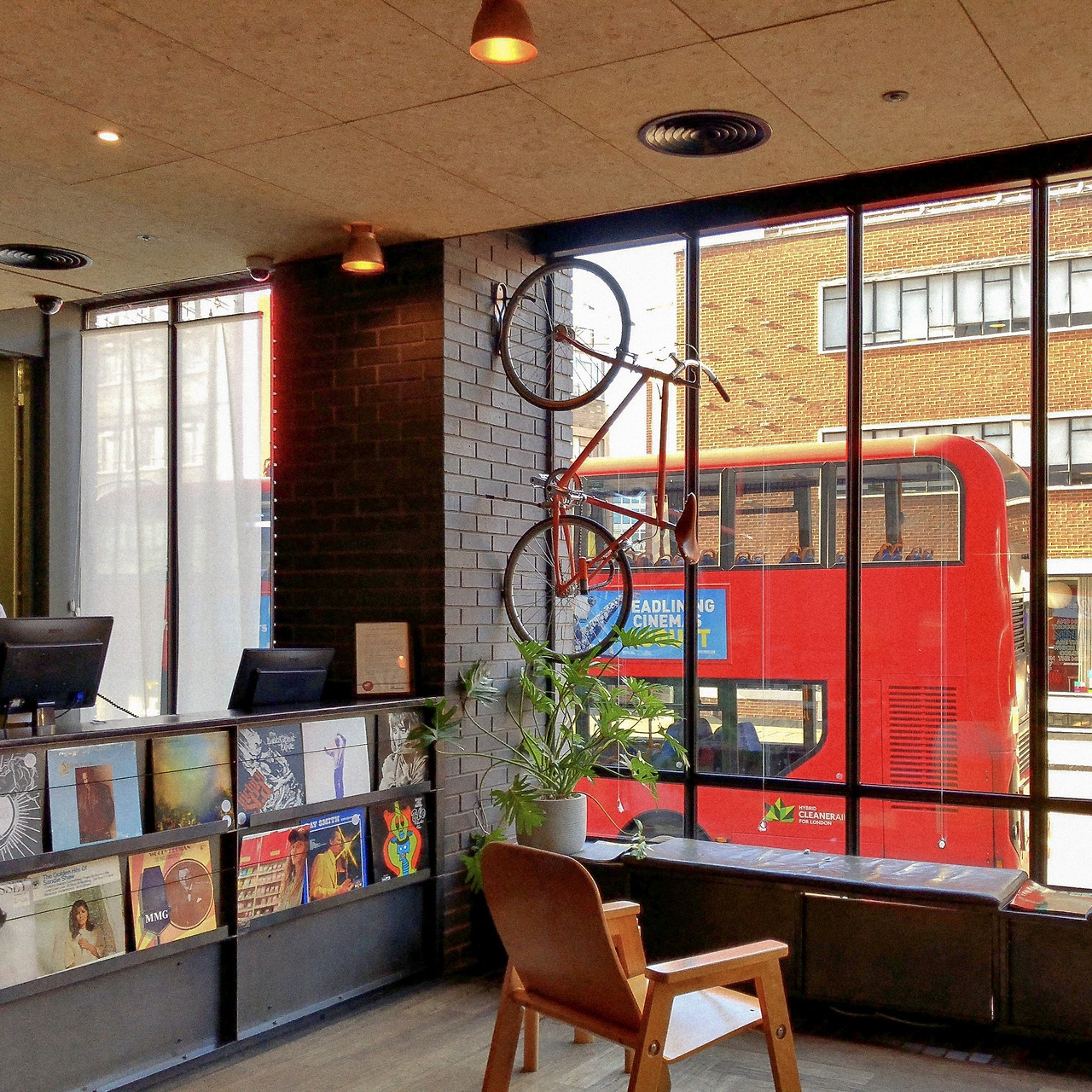 포틀랜드나 시애틀 같은 로컬 느낌이나 빈티지한 느낌은 없지만, 쇼디치 나름의 느낌을 살린 모던한 버전의 에이스호텔이다. 오래 앉아있기 좋은 테이블과 편한 의자, 포토부스, 자전거, 식물. 넓은 거실 같은 에이스 로비에 어떤 오브제들이 있어야 하는지 이제 대략 느낌을 좀 알 것 같다. 그런데 여기가 호텔 로비인지, 위워크인지, 독서실인지 헷갈릴 정도다. 아침부터 이렇게 다들 열일할 인인가. 플랫화이트 한 잔 시켜놓고, 괜한 민망함에 읽지도 않을 파이낸셜타임스만 만지작거렸다.
