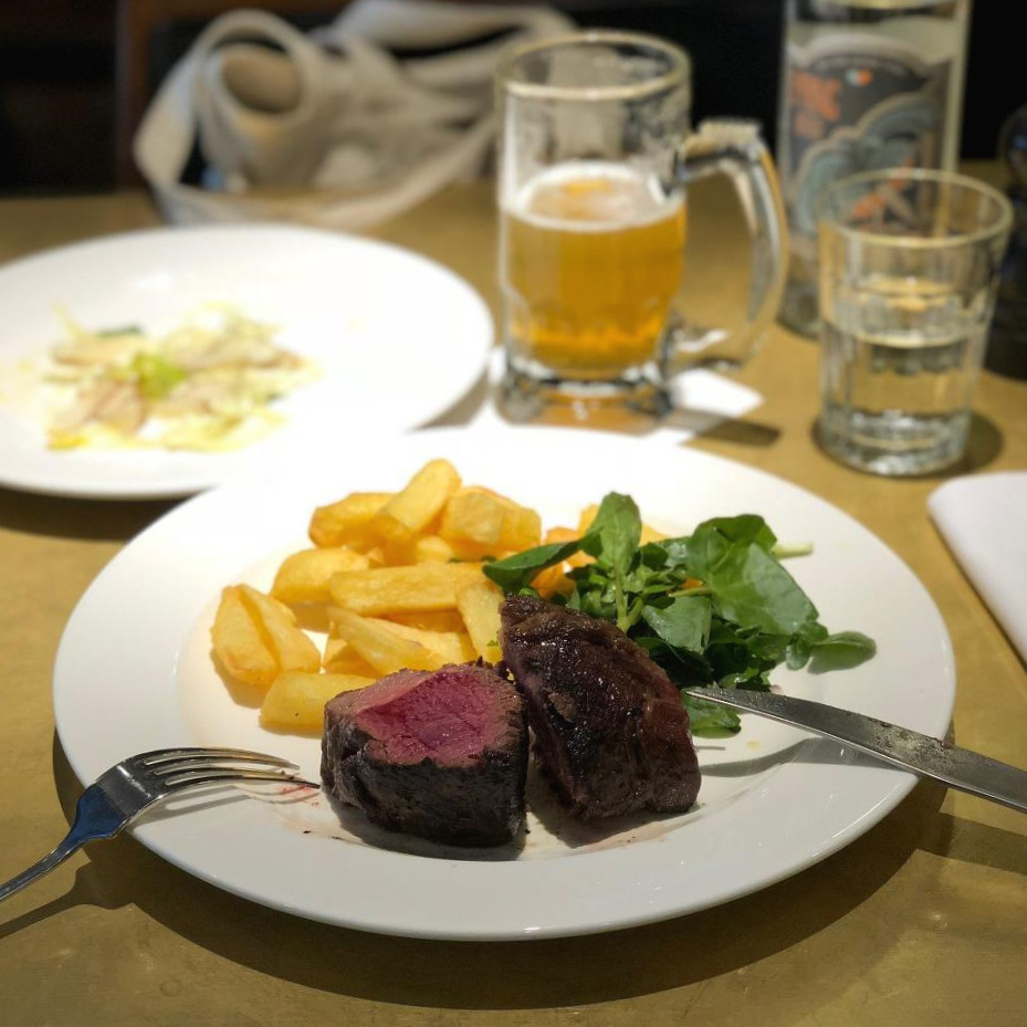 런던에서 한 번쯤은 고급스러운 스테이크를 먹어보고 싶었는데, 원피스 입고 나온 오늘이 마침 날이다 싶었다. 근처에 나름 평이 괜찮은 'Hawksmoor Spitalfields'라는 레스토랑에서 애피타이저와 메인 2코스를 주문했다. 소름 끼칠 정도로 맛있지는 않았는데 계산서를 받고 소름이 끼쳤다. 맥주 마시느라 입에도 안 댄 물 값만 6천 원 정도 하는 거다. 이런 식당에서 물값 따로 받는 건 매번 알면서도 막상 '물 줄까?'라고 물어보면 습관적으로 '네' 하게 된다. 바보야..
