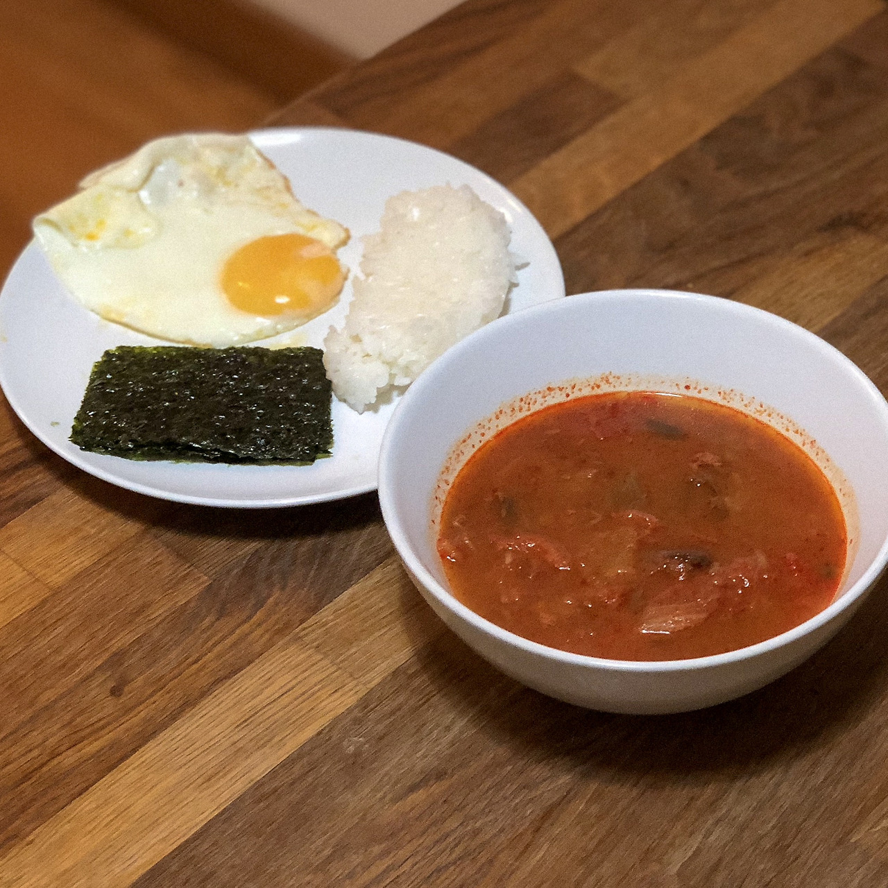 저녁은 간단하게 기본템 조합으로 해치운다. 한국에서 가져온 김치찌개 팩과 김이 제 몫을 할 시간이다. 밥 반 공기는 찌개와 먹고, 반 공기는 볶아 먹었다. 아주 야무지게 잘 먹는다.
