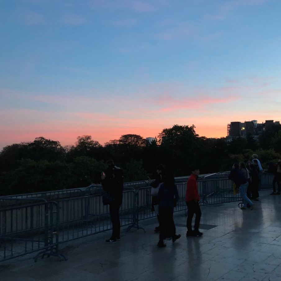 무엇보다 오늘 하늘이 다했다. 청명한 하늘이 가장 감사한 순간은 바로 해질 녘 노을 질 때다. 왼쪽에는 붉은 달이 떠오르고, 정면에는 에펠탑에 불이 들어오기 시작했고, 오른쪽에는 하늘을 핑크빛으로 물들이며 해가 지고 있었다. 사진이 실물을 담지 못해 아쉽지만. 그제, 어제, 오늘 벌써 사흘째 보는 에펠탑인데. 어떻게 이렇게 볼 때마다 새롭고 짜릿할 수가 있나.