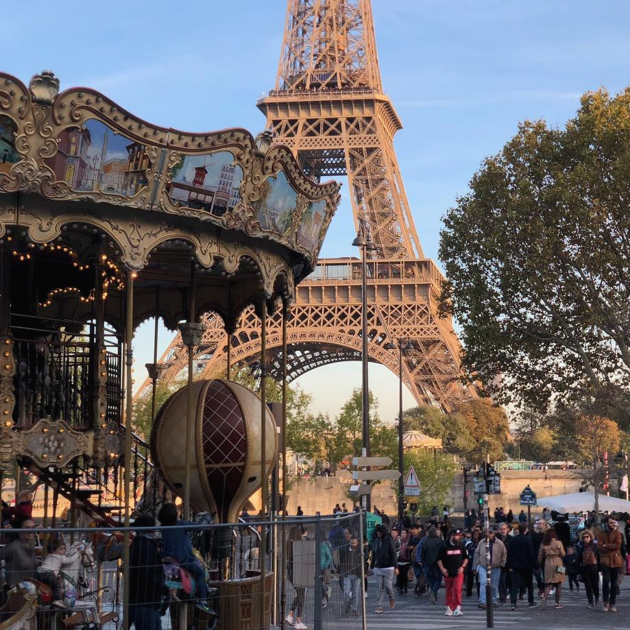 저녁에 다시 만나기로 한 동행에게 조금 일찍 연락이 왔다. "5시쯤 샤요궁 같이 가실래요?" 샤요궁이 뭔지도 몰랐던 파리 바보는 검색해본 후에야 다들 에펠탑 인증샷 하나씩은 찍는다는 그곳임을 알게 됐다. 가지 않을 이유가 없어 바로 출발했고, 입구에서 그녀를 기다렸다. 에펠탑 앞에 회전목마가 있다니, 놀이공원도 아니고. 너무 어이없게 예쁜 풍경.