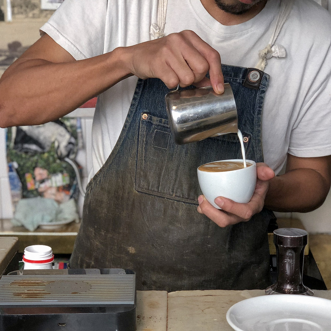 의외로 내부 인테리어는 약간 을지로 스타일, 일본계 바리스타 분은 약간 시부야 스타일, 여기 커피 원두는 로스티드 인 베를린, 근데 여기는 파리다. 그만큼 다채로웠던 공간, 커피 맛도 훌륭했고.