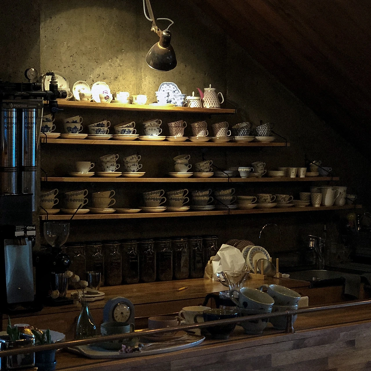 어둡고 묵직한 공기 속에서 모두가 작은 목소리로 대화를 나누거나 각자의 시간에 집중하는 분위기도 마음에 들었다. 군데군데 책, LP, 필름 카메라 등이 놓여있는 걸 볼 수 있다. 역시 커피와 책, 음악, 그리고 사진을 좋아하면 나와 잘 맞는 좋은 사람임에 틀림없다.
