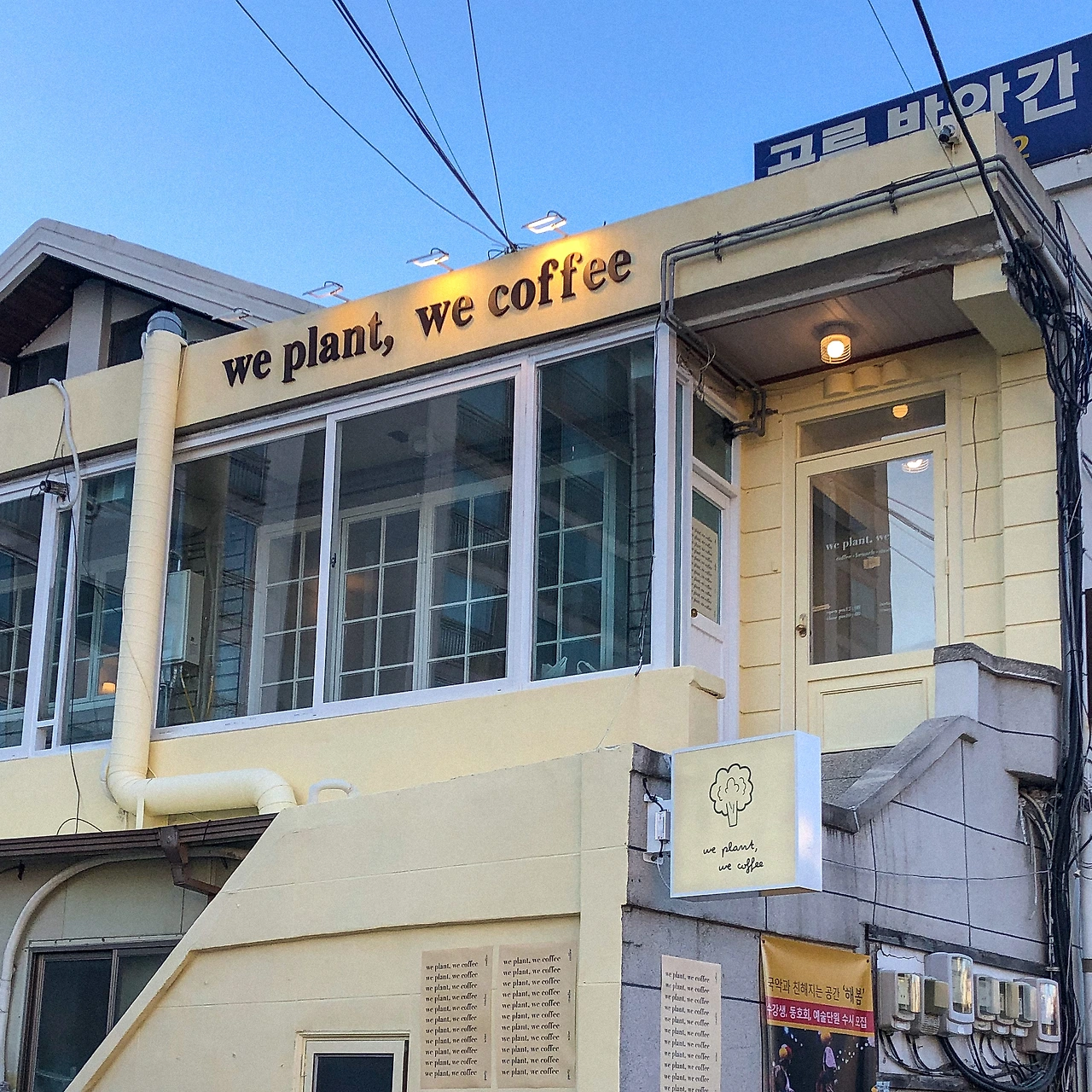 추워서 덜덜 떨면서 걷다가 무심코 뒤를 돌아봤는데 'we plant we coffee'라는 간판에 반해 홀린 듯이 들어갔다. 알고 보니 오픈한 지 일주일 정도 된 신상 카페. 전반적으로 화이트 위주의 공간에 군데군데 컬러풀한 포스터와 소품이 포인트가 되는 인테리어로, 약간 연남동에 있을 법한 카페라고 생각했다.