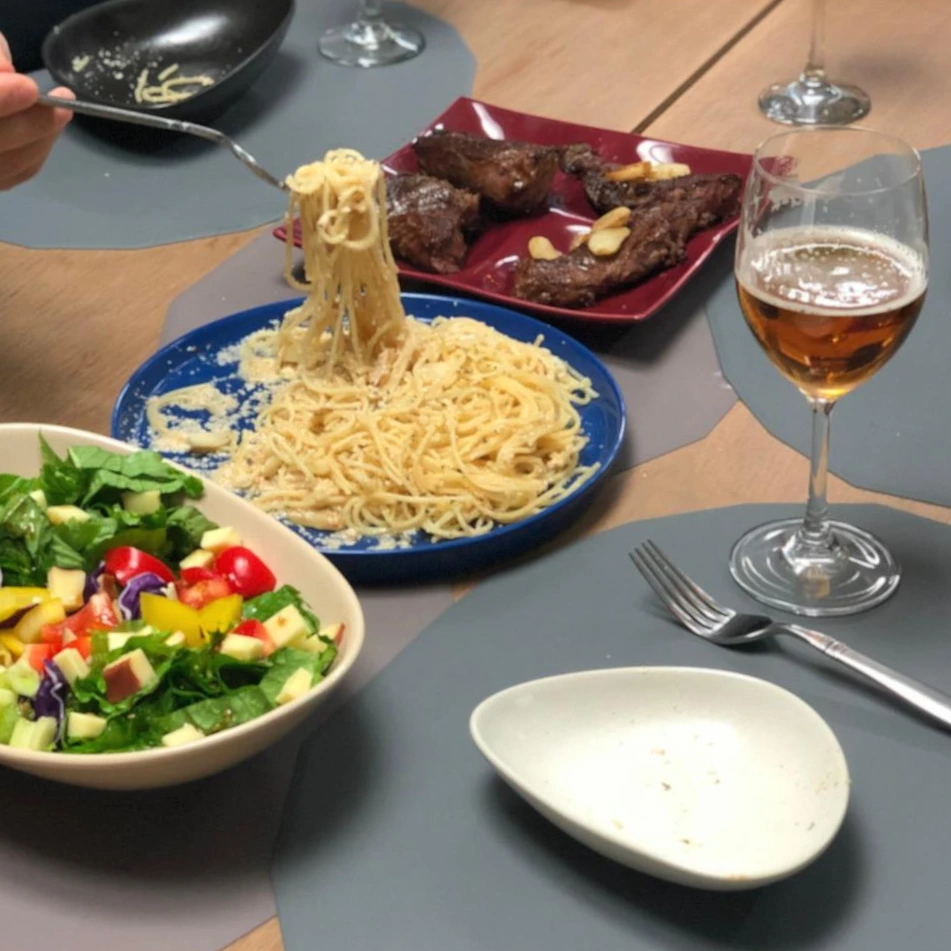 - 내가 했지만 진짜 맛있어서 세 번이나 해 먹었고, 가족들도 맛있게 먹어줬다. 팬에 올리브유 조금 두르고 마늘 볶고, 버터 녹여서 껍질 벗겨낸 명란 긁어 넣고, 익힌 파스타면과 면수 약간 넣고, 미친 듯이 비벼주면 끝! 환상!