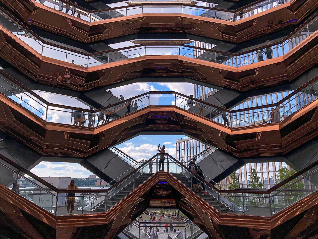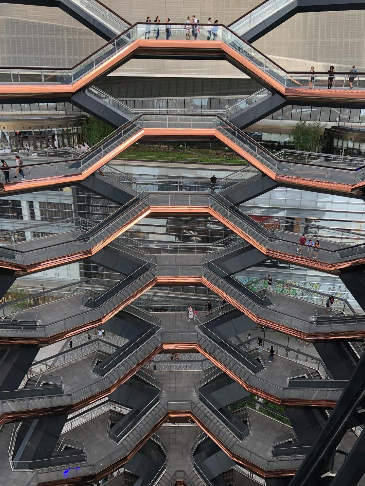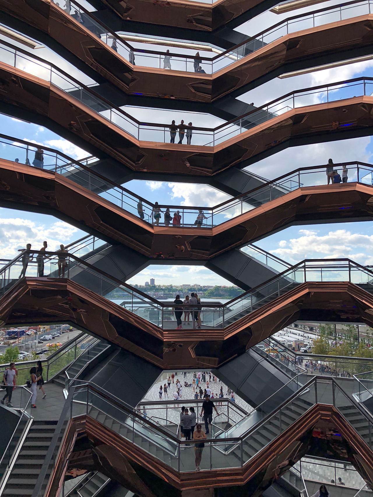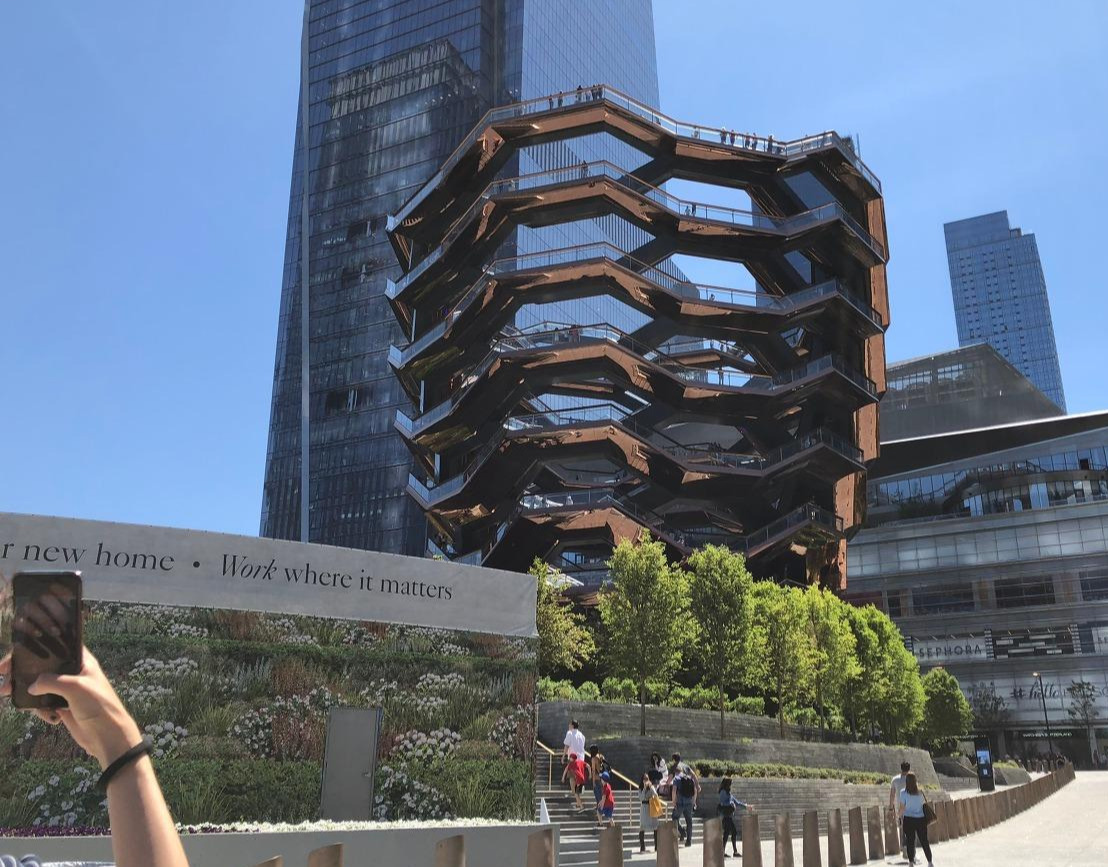 다음 목적지는 최근 뉴욕에서 핫한 랜드마크로 떠오른 허드슨 야드의 베슬(Vessel). 사실 숙소 근처라 아침 일찍 구경 왔었는데 알고 보니 시간대별로 예약해야 입장할 수 있어서, 오후 시간대 티켓을 구해놓고 다시 왔다. 멀리서도 한눈에 '아, 저기구나!' 알아볼 수 있는 압도적인 존재감. 진짜 특이하게 생겼다.