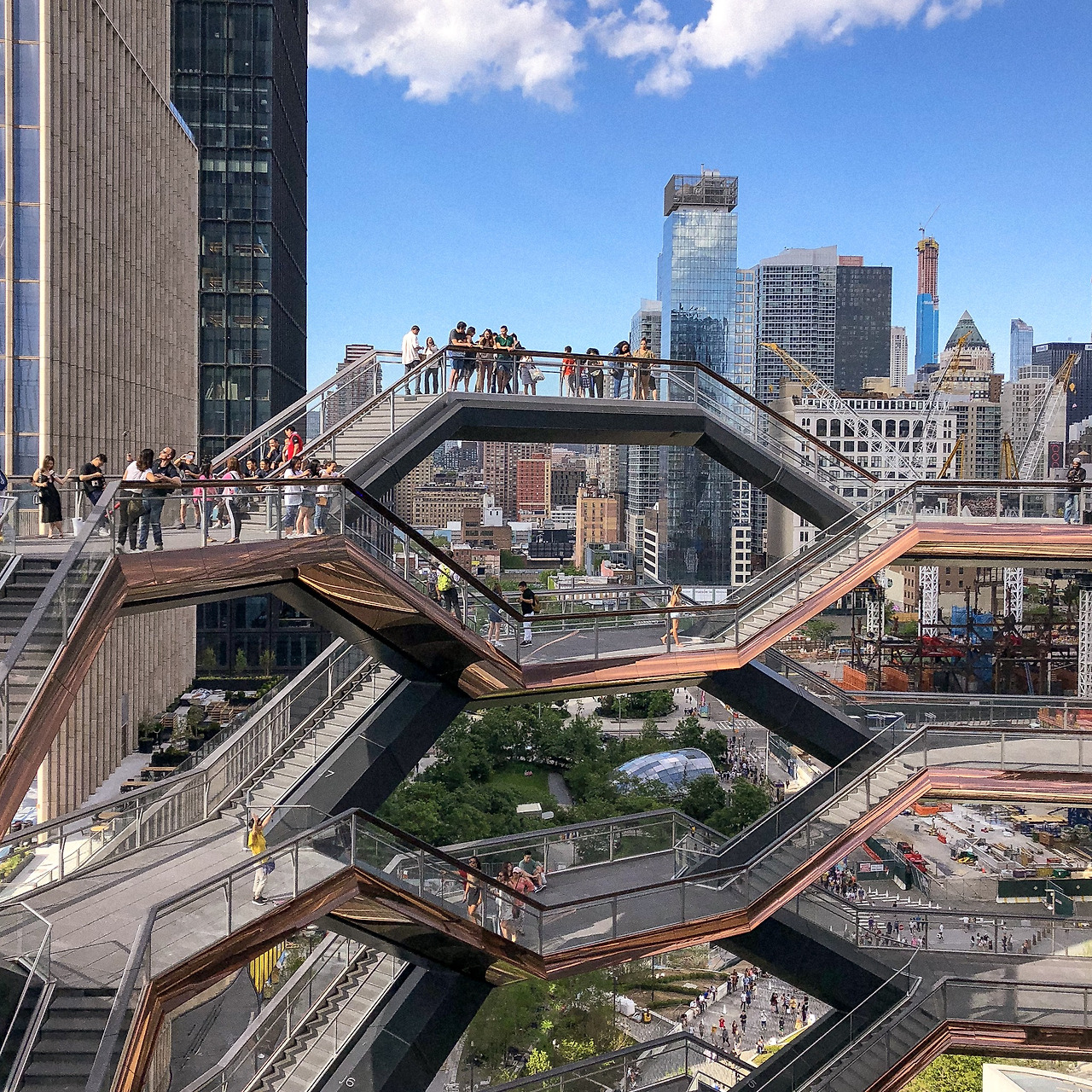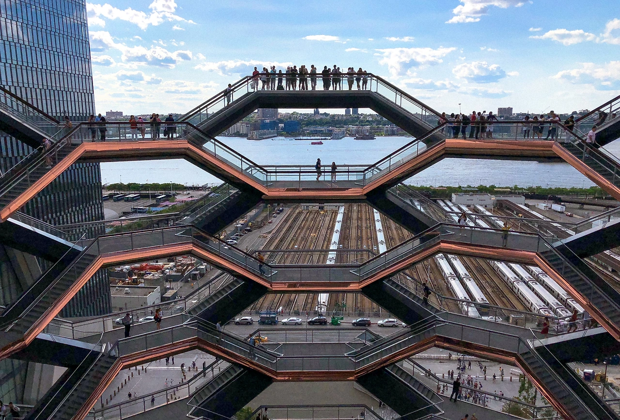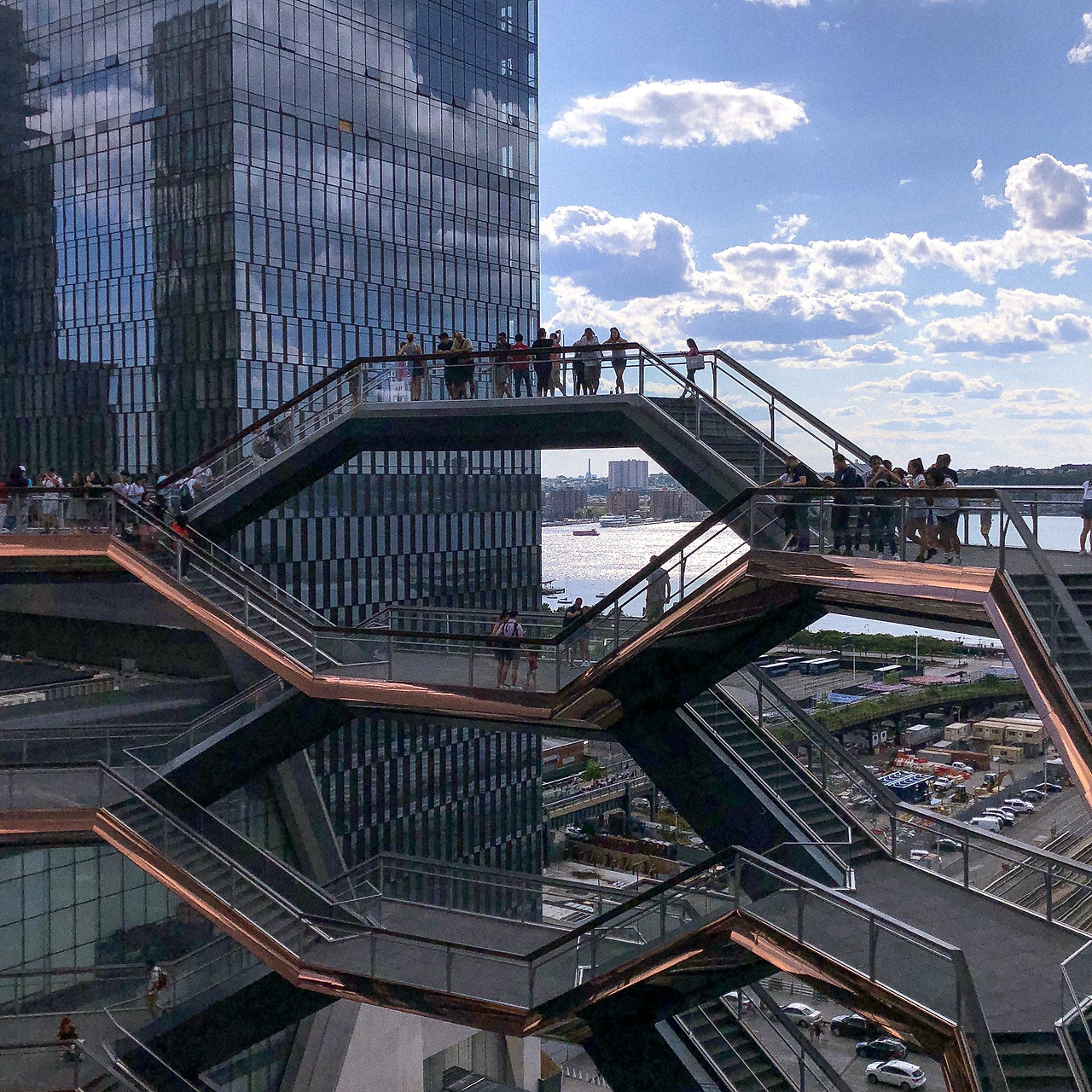 다음 목적지는 최근 뉴욕에서 핫한 랜드마크로 떠오른 허드슨 야드의 베슬(Vessel). 사실 숙소 근처라 아침 일찍 구경 왔었는데 알고 보니 시간대별로 예약해야 입장할 수 있어서, 오후 시간대 티켓을 구해놓고 다시 왔다. 멀리서도 한눈에 '아, 저기구나!' 알아볼 수 있는 압도적인 존재감. 진짜 특이하게 생겼다.
