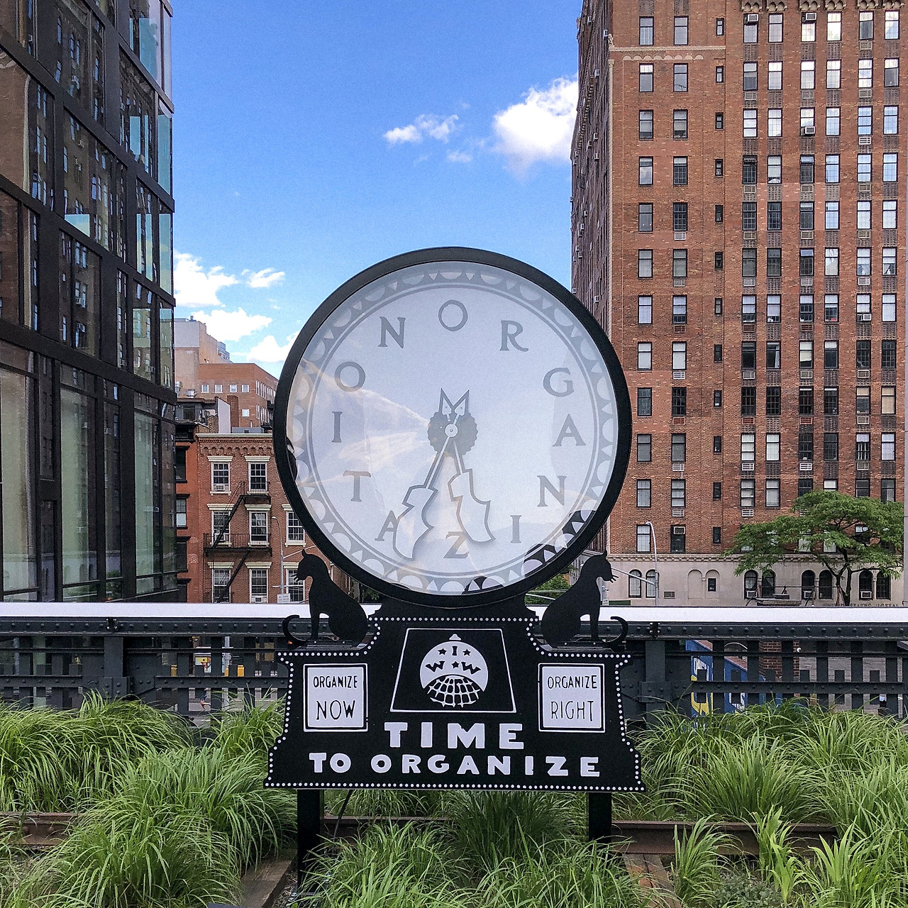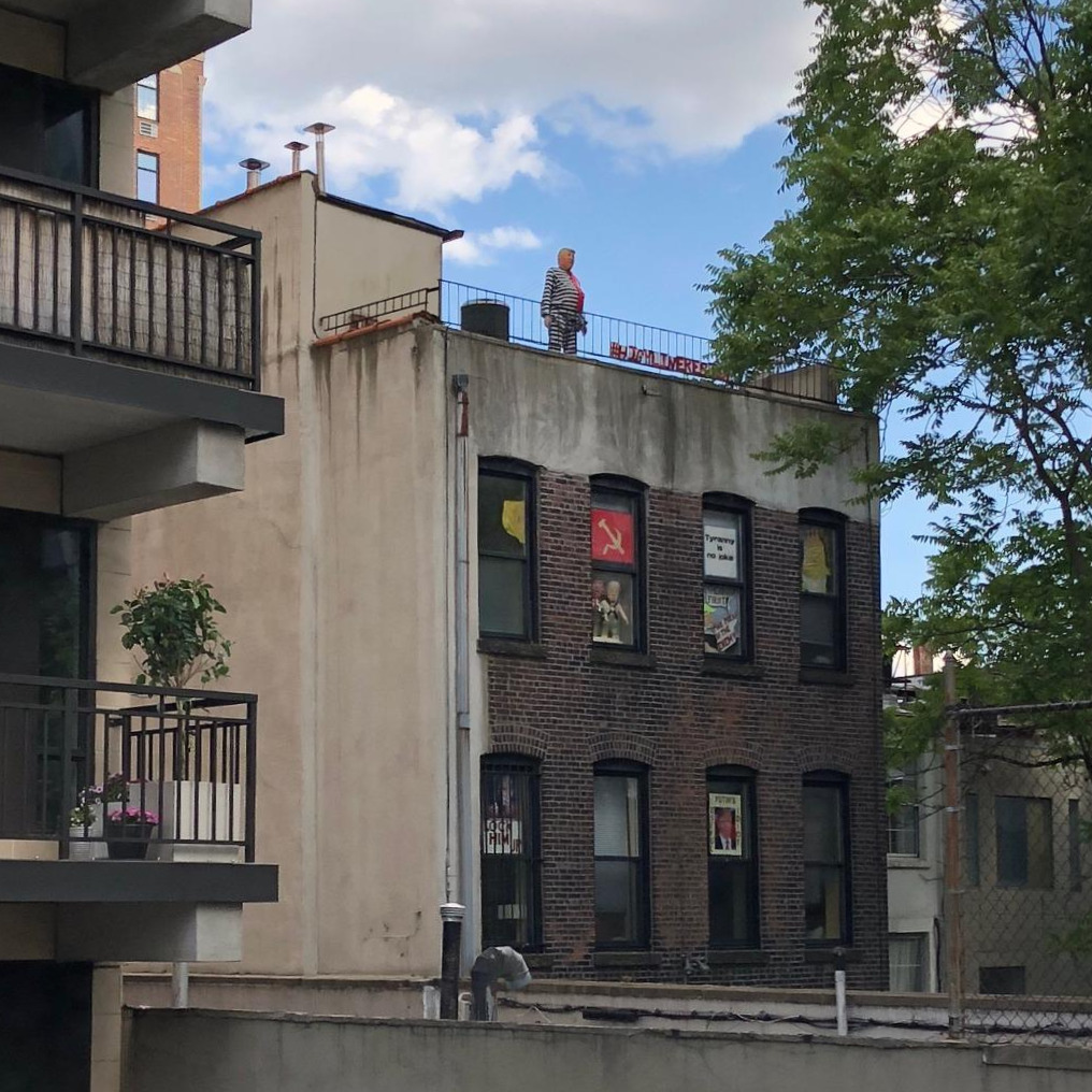 산책로에 군데군데 설치되어 있는 공공예술 같은 조형물 보는 재미도 쏠쏠했는데 더 흥미로웠던 건 지나가면서 보이는 집들 구경하는 거였다. 공원에서 남의 집 창문 안이 살짝 보일 수밖에 없어서, 몇몇 집들은 프라이버시를 지키기 위해 포스터 같은 걸로 창문이나 외벽을 꾸며놨다. 그중에서도 유독 트럼프 대통령을 비꼬고 반대하는 문구와 그림을 내걸어 메시지를 외치는 가구들이 많이 보였다. 이런 자유분방한 포인트들이 하이라인 파크를 더 개성 있는 공공장소로 만들어준 게 아닐까 하는 생각.