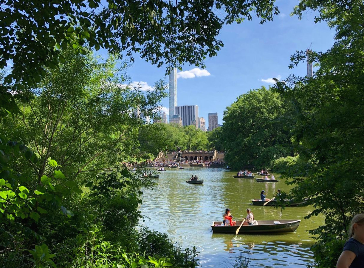 피크닉을 정리하고 센트럴파크를 좀 더 둘러보기로 했다. 어찌나 넓은지 그렇게 많이 걸었는데 고작 4분의 1도 못 돈 것 같다. 공원이 뭐 나무랑 잔디밭 정도겠지 싶었는데, 센트럴파크는 구역마다 다 다른 풍경을 선보여 지루할 틈이 없었다. 군데군데 호수도 있고, 연못도 있고, 언덕도 있고, 배도 다니고. 이 정도면 도심 속 공원을 넘어 '도심 속 휴양지'라고는 해줘야 섭섭하지 않을 것 같은 다이내믹함이다. 볼거리가 꽤 많았고 그것들이 보이기 위해 꾸며진 가짜라는 느낌은 들지 않았다.