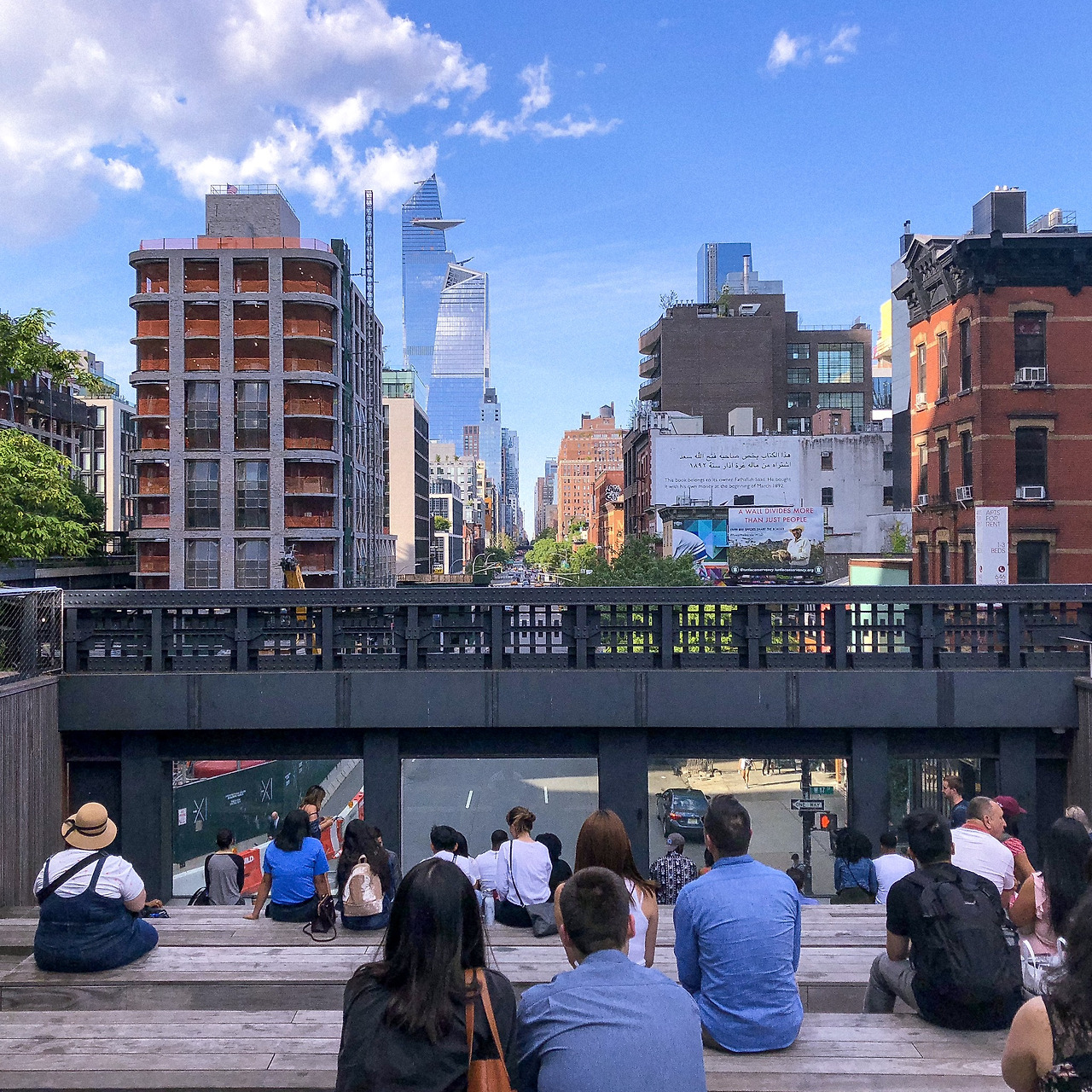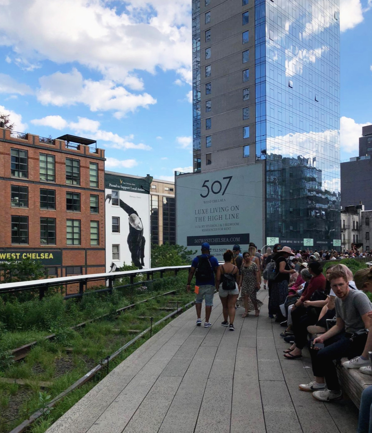 허드슨 야드에서부터 첼시까지 하이라인 파크가 쭉 이어진다. 옛날에 화물열차가 다니던 철로를 개조해서 시민들을 위한 고가도로 산책로로 조성한 곳이다. 인파가 많은 산책로 치고는 폭이 좁기는 한데, 군데군데 앉아서 쉴만한 자리도 있고. 어떤 구간은 빌딩 숲 사이를 가로질러 나있다면 또 어떤 구간은 자연 속을 지나가는 것 같이 제법 공원의 모양을 갖췄다. 이렇게 역사 속으로 버려질 뻔했다가 아이디어로 재탄생한 장소를 좋아한다.