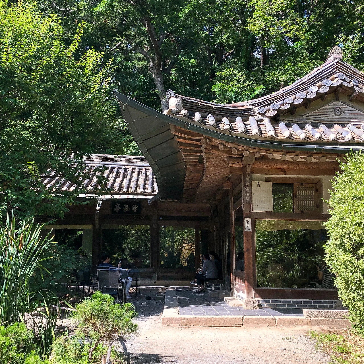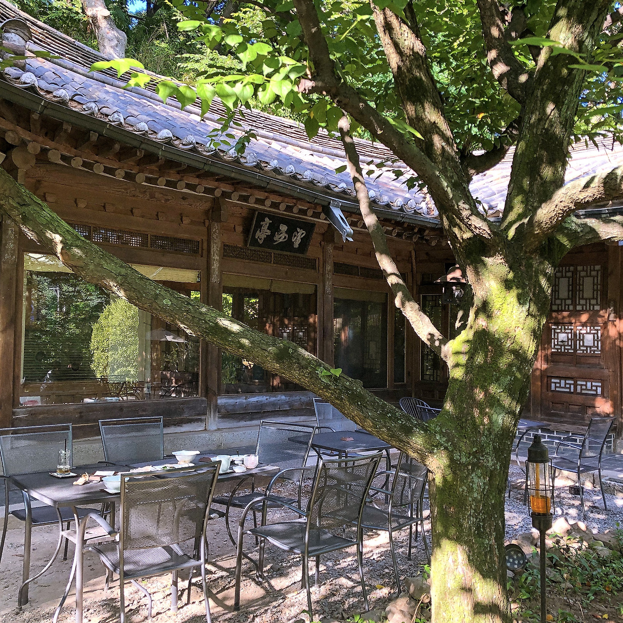 여름에는 시원한 차 종류와 팥빙수를 파는데, 시원한 오미자차를 주문하니 작은 경단 두 개가 함께 나와 소소하게 기뻤다. 차 한 잔에 1만 원으로 가격대가 꽤 있는 편인데 별로 아깝지는 않았다. 이렇게 초록색에 둘러싸여 멍 때리는 나만의 고요한 시간이 절실히 필요했기 때문이다. 몇 년 전만 해도 전통 찻집은 촌스럽다고 생각했을 텐데, 이젠 이런 고전적인 게 가끔 끌리기도 한다. 나중에 엄마 아빠 모시고도 한번 가야지.