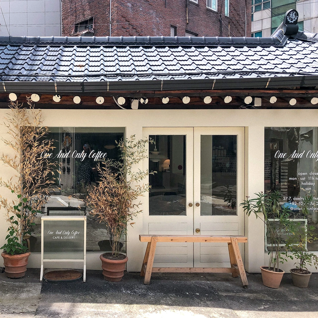 이대 앞 골목길에 있는 작은 한옥 건물을 개조한 카페. 여기는 솔직히 외관이 다했다. 한옥 지붕의 멋을 살려 근사한 감성 포토 스팟으로 꾸며놨다. 실내는 또 엄청 세련되게 요즘 유행하는 오늘의집st로 인테리어로 꾸며놓은 게 나름의 반전.