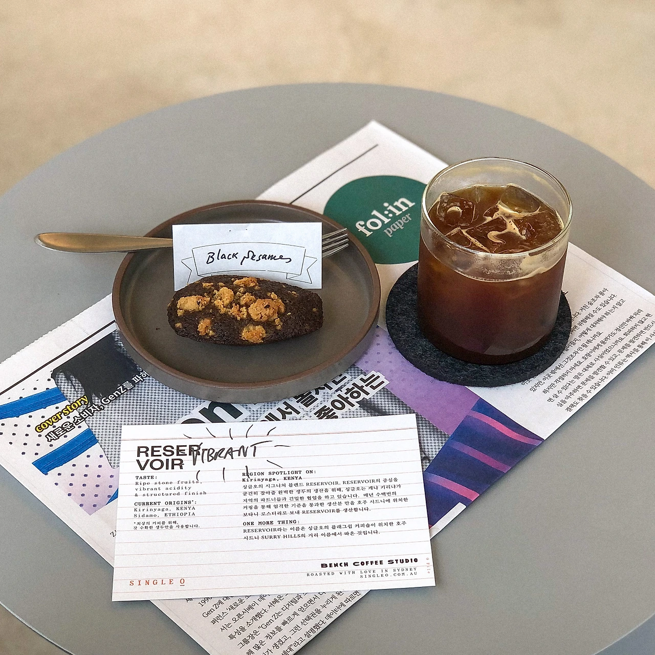시드니 갔을 때 마셔본 적 있는 Single O 커피를 쓴다고 해서 놀랐다. 산미가 강한 커피를 평소 즐기는 편은 아닌데, 디저트로 주문한 흑임자 휘낭시에가 워낙 고소해서 커피와의 조합이 괜찮았다. 주문할 때 원두 설명도 자세히 해주시고, 중간에 커피 맛은 괜찮은지도 여쭤봐 주시는 등 사장님이 커피에 진심인 게 느껴져서 좋았다.