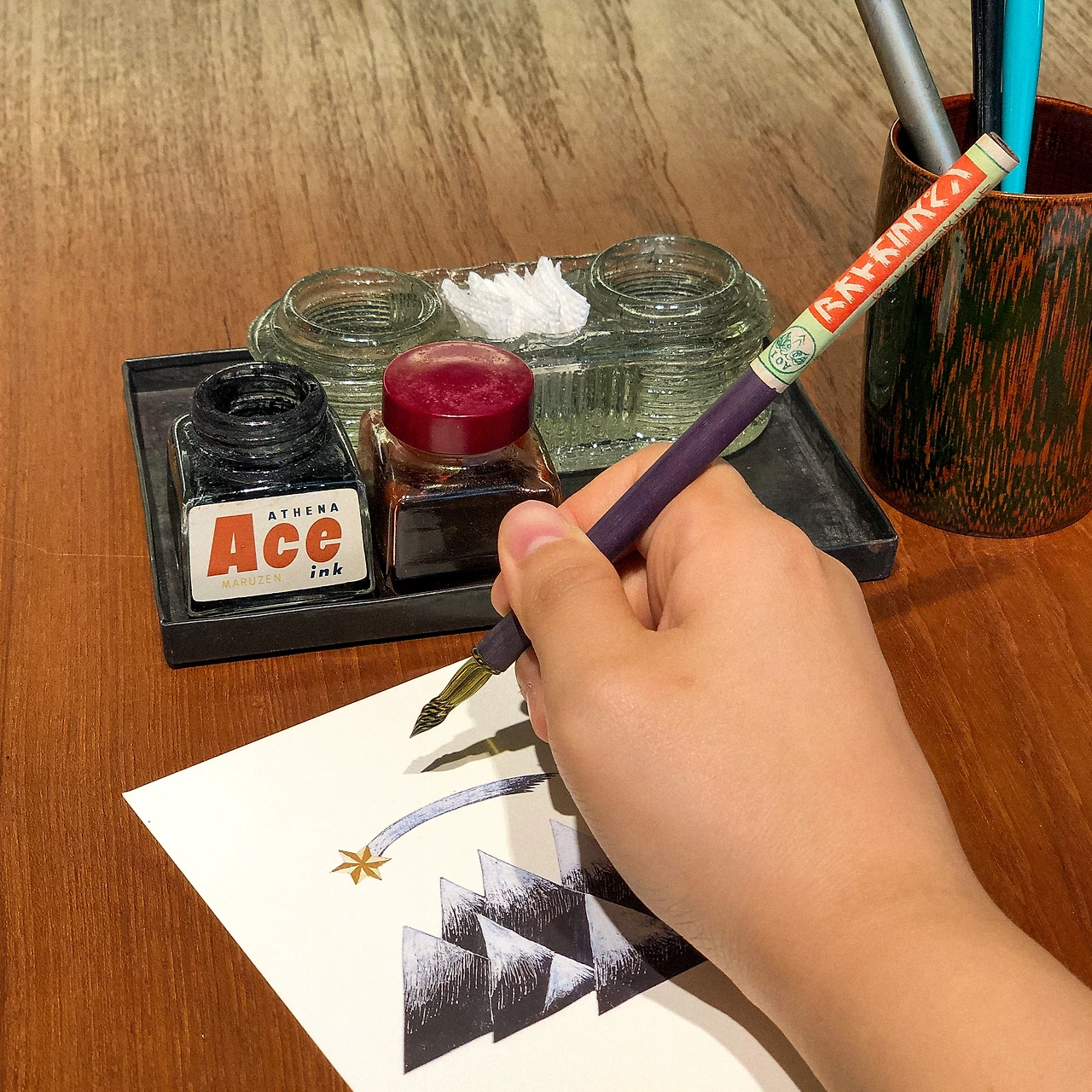시즌별로 다른 컨셉의 전시를 여는 곳. 7월 초까지였던 '문구다방'에 다녀왔다. 마음에 드는 엽서, 편지지, 메모장 등 종이 네 장을 골라, 준비해주시는 유리펜과 잉크펜으로 글이나 편지를 써보는 코스다. 예쁜 마스킹 테이프와 스탬프로 마음껏 꾸며볼 수도 있다. 잉크펜으로 글씨를 써보는 경험이 처음이라 신기했고, 아무에게도 보여주지 않을 솔직한 문장들을 쭉 써내려 갔다.