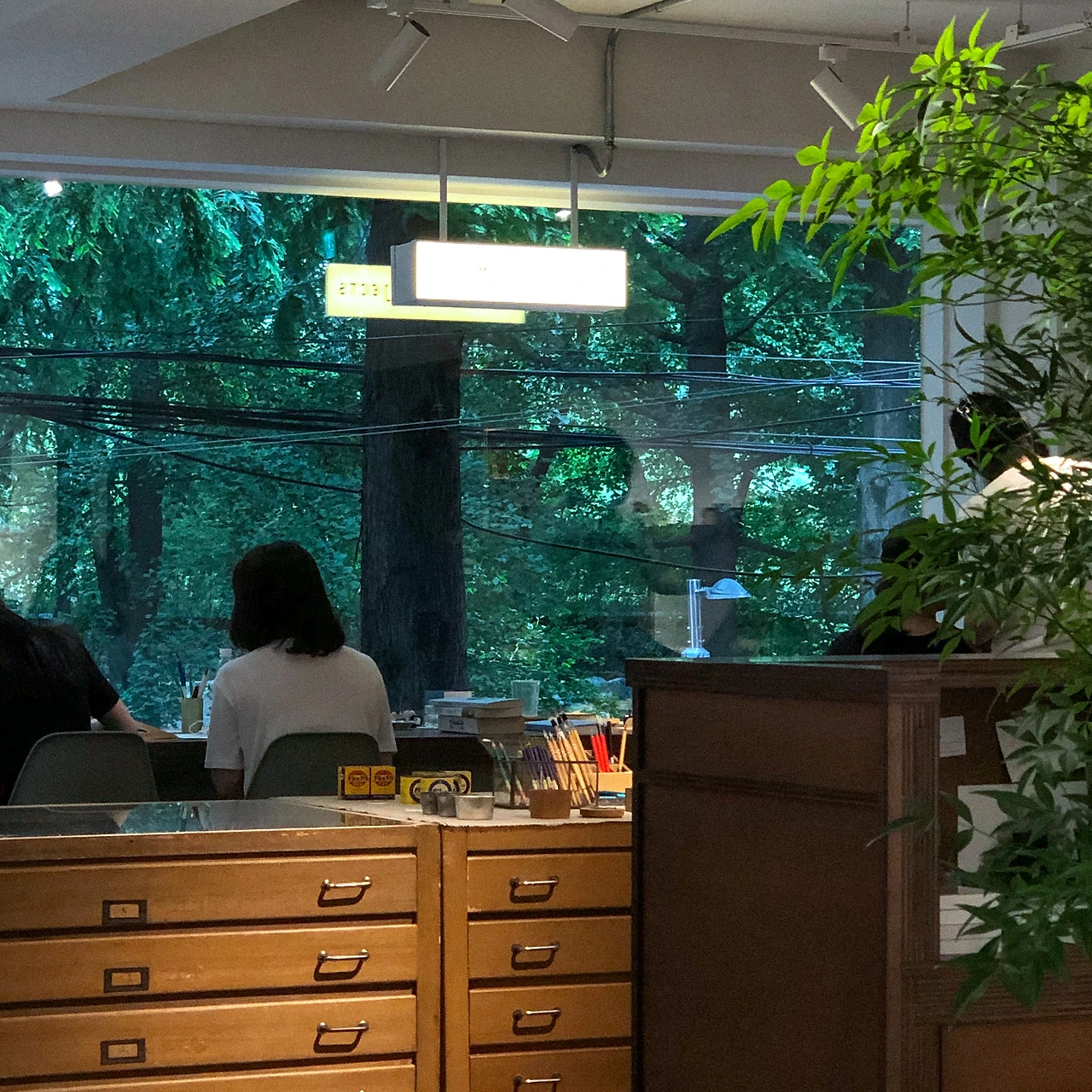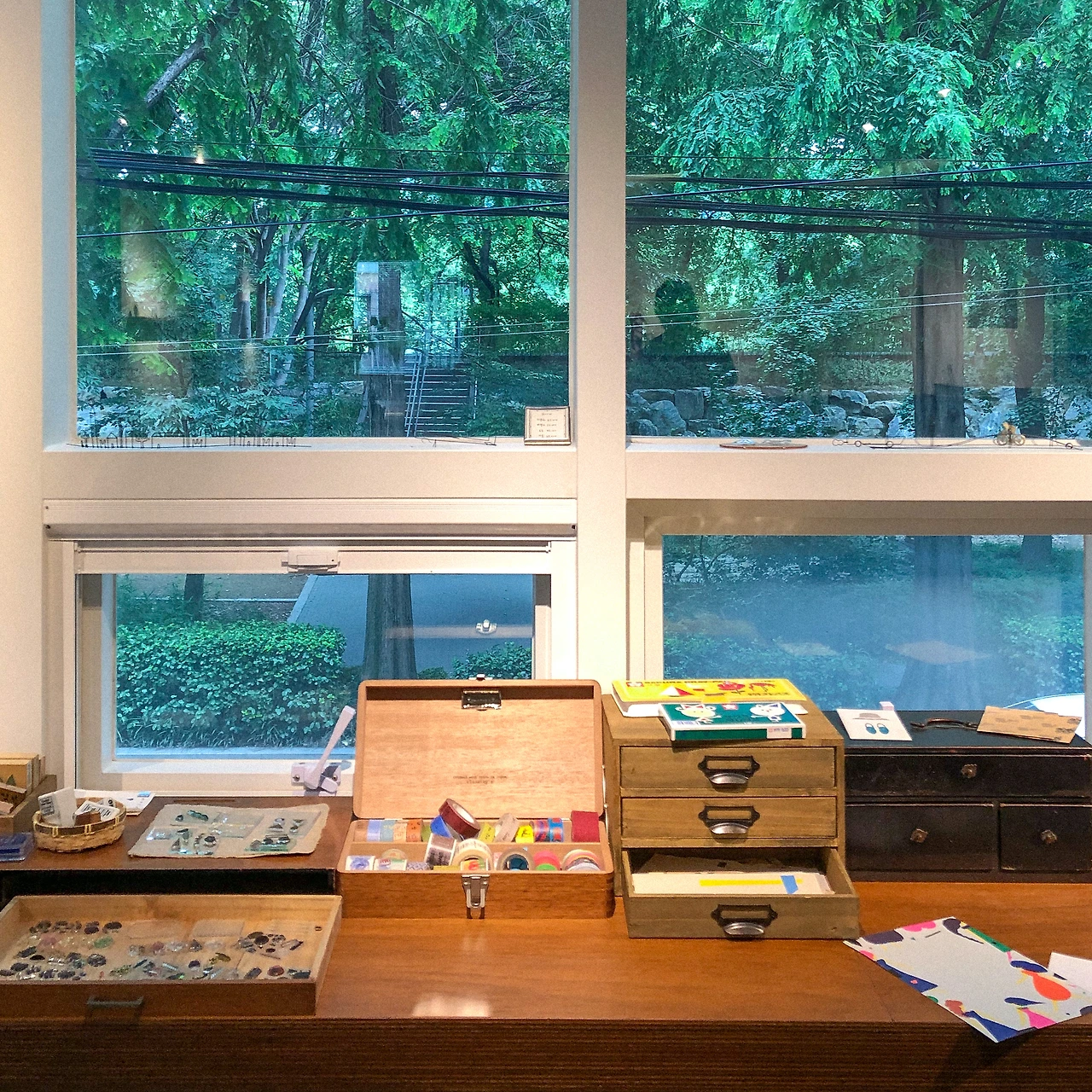 문구를 써보는 경험도 좋았지만 무엇보다도 초록초록한 양재천 숲이 훤히 보이는 창 밖 풍경이 내 마음을 사로잡았다. 여기선 뭘 해도 만족스러울 것 같은 공간이다. 지금 늬은에는 '맑은 생활'이라는 전시가 진행 중이고 '문구다방'은 가을에 다시 돌아온다고 하니 참고.