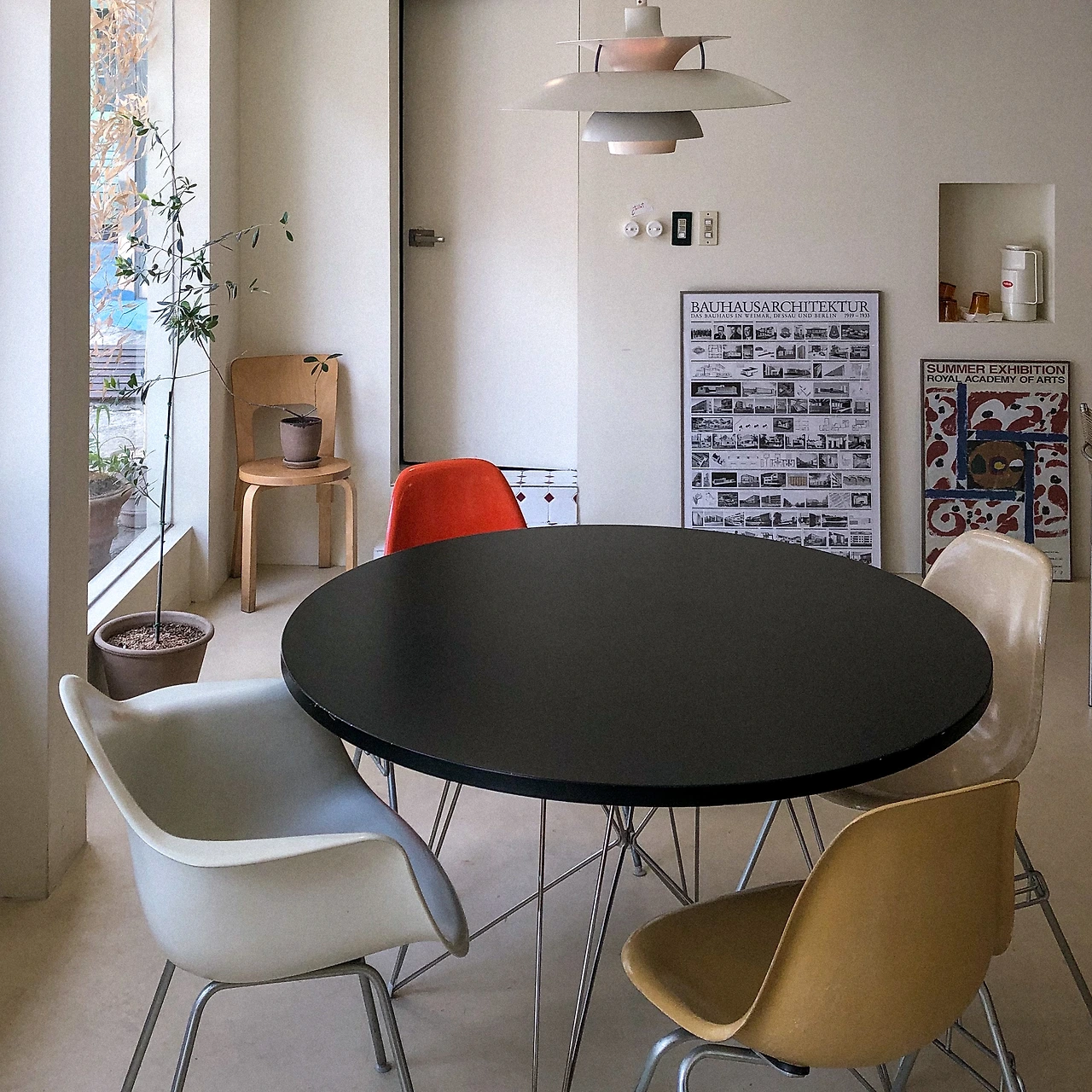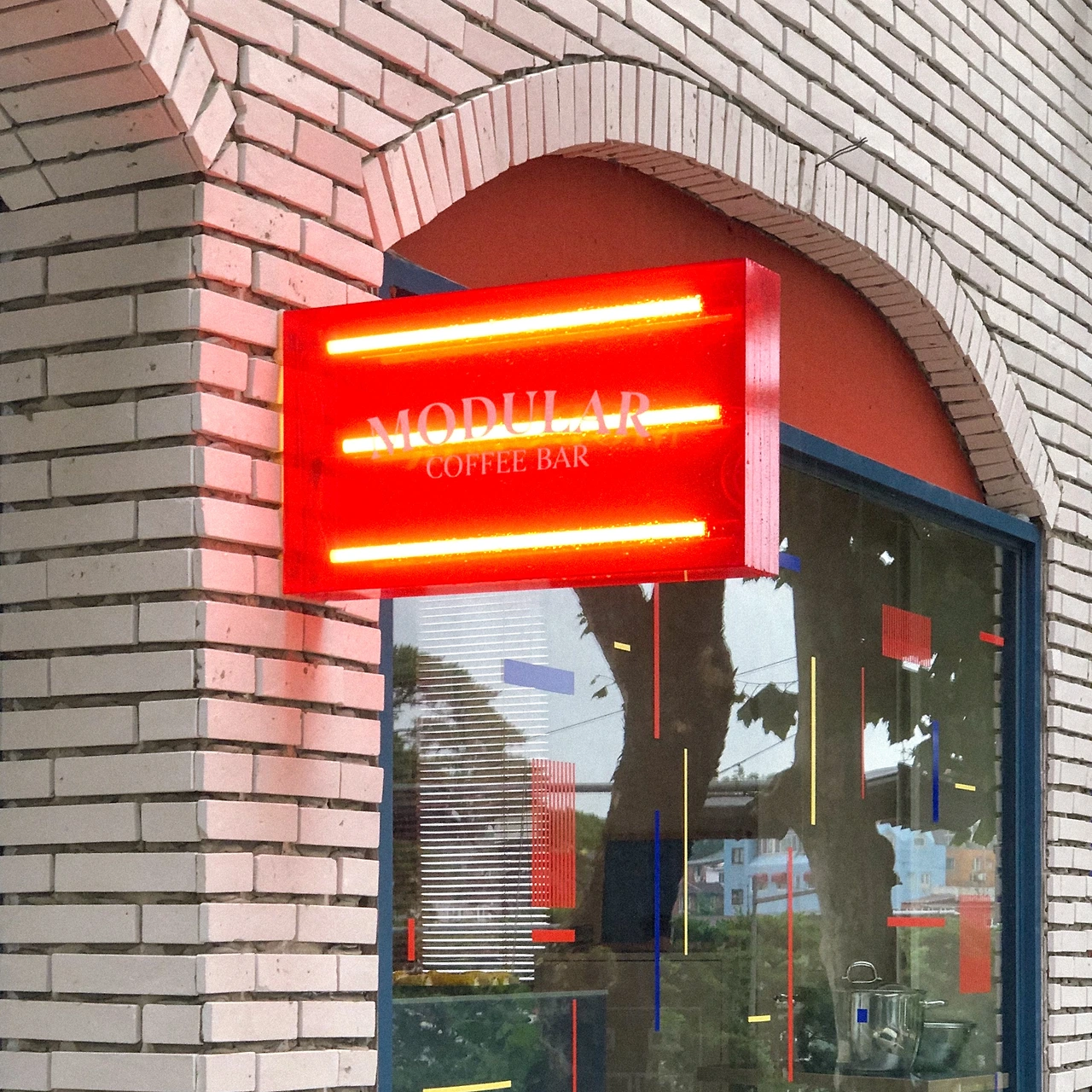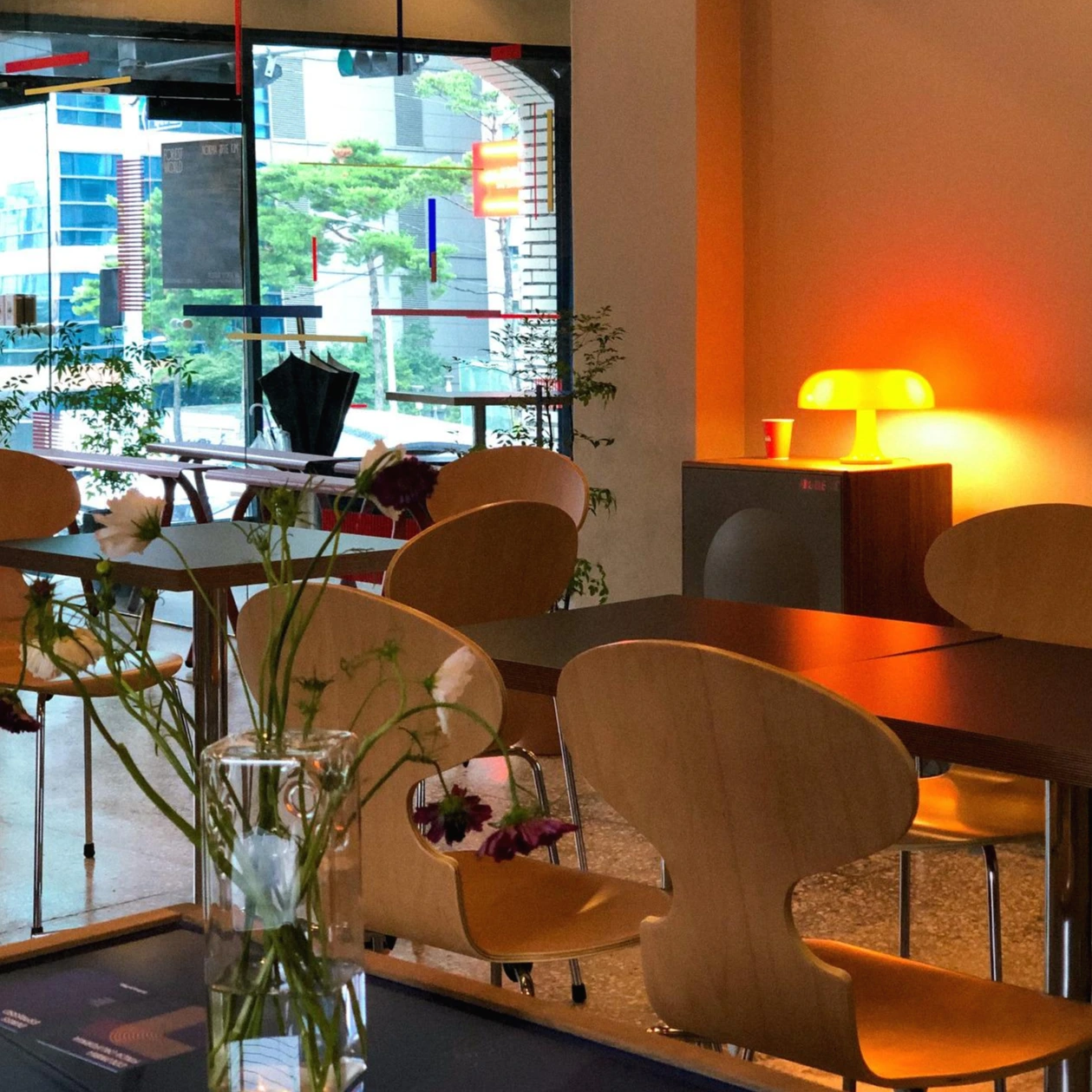 강렬한 오렌지와 차분한 네이비 컬러 조합이 인상적이었던 곳. 파란색 선반으로 분리시켜놓은 커피 바 공간이 힙해 보였고, 낮에도 어두웠던 날 밝고 따뜻하게 빛나던 오렌지색 버섯 모양 조명도 포인트였다. 내부에서 창문과 거울을 통해 밖을 내다보며 커피를 마실 수 있는 개방감 있는 구조였는데, 창문에 붙여놓은 오렌지&네이비 컬러 스티커도 아이덴티티 확실하고 감각 있었다.
