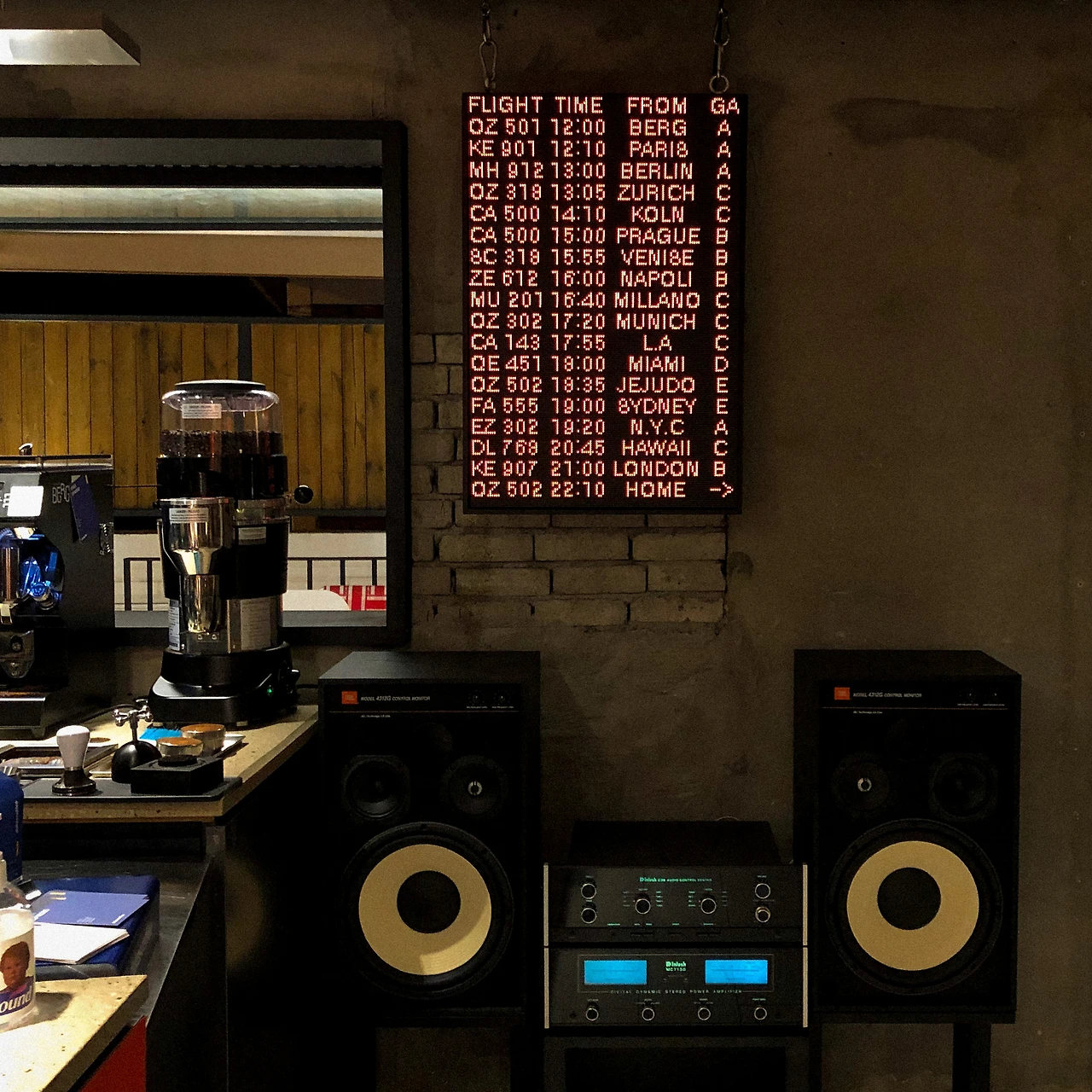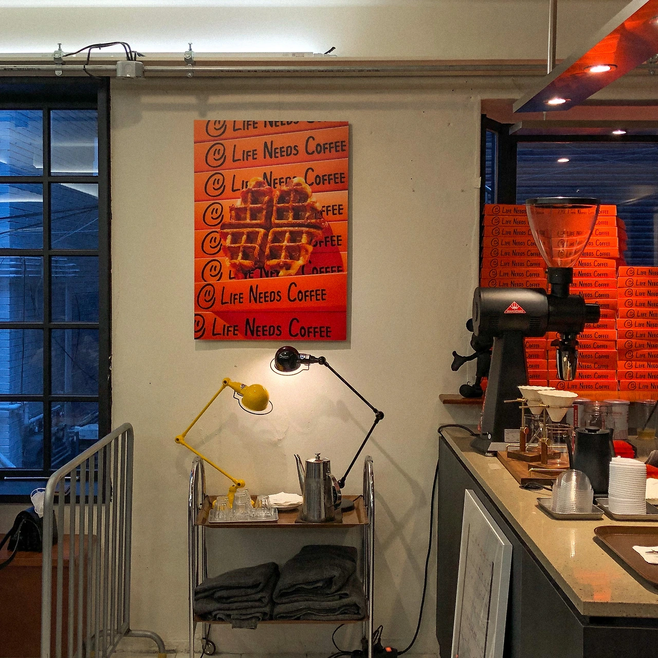 지금 대한민국에서 가장 난리인 음식 '크로플'이 맛있다고 소문난 곳. 모든 테이블에서 크로플을 먹고 있고, 커피 바에서는 쉴 새 없이 크로플을 구워내고, 크로플 스티커를 가져갈 수 있게 비치해놓고. '#' 모양의 카페 로고도 아마 크로플 모양을 본떠 만들었을 테다. 이 정도면 이 카페의 시그니쳐 메뉴인 걸 넘어서 아이덴티티 자체가 크로플인 건가 싶어서 조금 웃음이 나기도 했다. 이 대유행이 끝나도 여전히 지속 가능한 카페 일지 궁금해지는 부분. 크로플로만 기억되기에는 '베르그'라는 이름과 간지 쩌는 공항 전광표지판이 조금 아까운데.