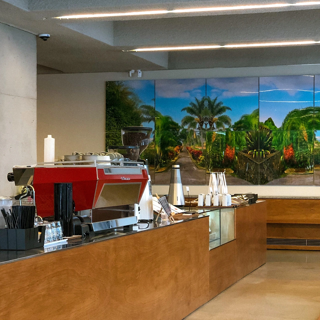 요즘 같이 덥고 습한 날에 가면 딱 좋다. 테이블이 다닥다닥 붙어있는 게 아니라 손님들이 벽을 따라 앉는 구조로 되어 있어, 전혀 답답하지 않고 서로 간의 적당한 거리도 유지된다. 벽면을 가득 채운 바다 그림과 열대 정원 그림을 가만히 보고 있으면 시원해지면서 마음이 탁 트이는 기분도 든다. 그리고 무엇보다 냉방을 정말 아낌없이 틀어줘서 나중에는 추워서 일어났을 정도다. 1층은 카페, 2층은 서점, 지하는 전시 공간으로 운영하는 복합 문화 공간인 만큼, 더운 날 밖에 나온 김에 이것저것 구경해봐도 좋겠다.