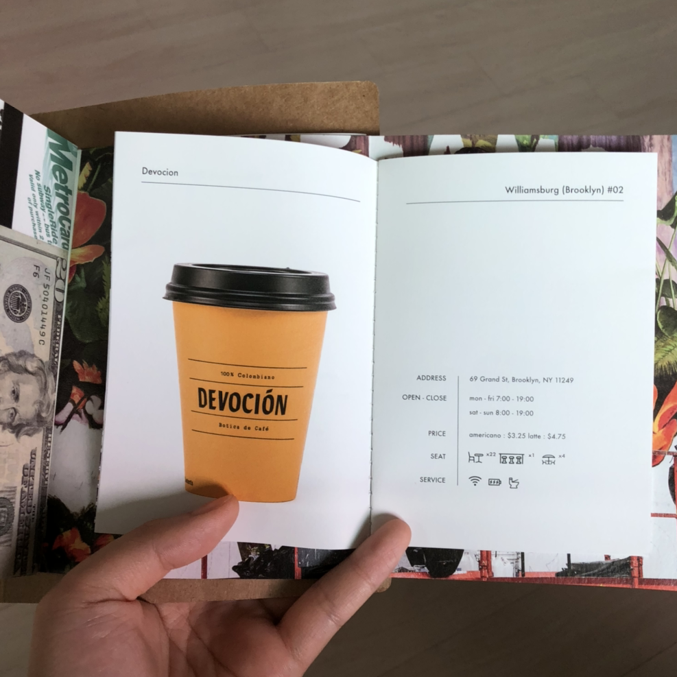 - 직접 수집한 테이크아웃 컵 디자인으로 소개하는 뉴욕 로컬 카페들. 이렇게 한 분야를 깊게 판 사람들의 창작물은 흥미로울 수밖에. 무엇보다 판형이 신기하고 실려있는 사진도 예뻐서 가끔씩 생각날 때마다 괜히 들춰보고 싶어 지는 책이다. 독립출판의 매력을 아주 잘 살렸고, 소장가치가 있다.