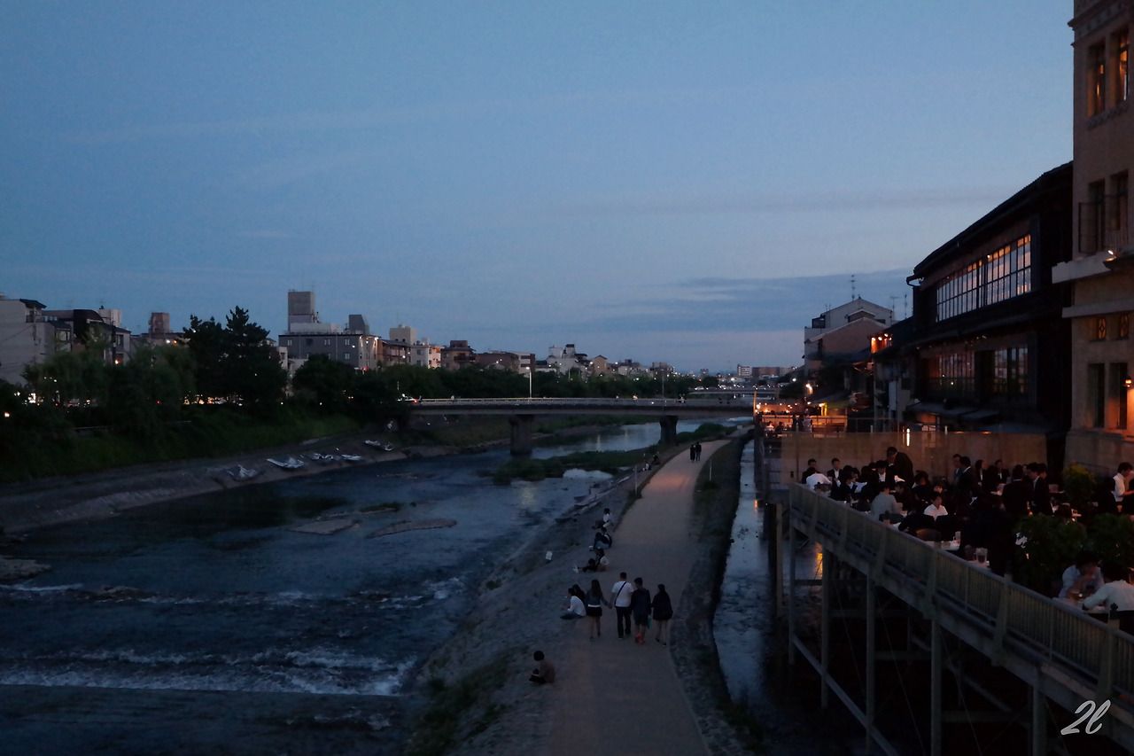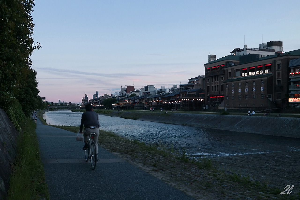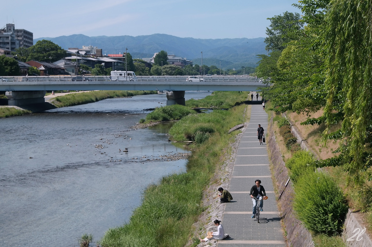 교토에서 가장 인상 깊었던 곳을 꼽으라면 단연 카모가와, 특히 기온 시조부터 산조까지 따라 올라가는 강변이라고 할 수 있겠다. 강 자체는 규모가 큰 편은 아니지만, 교토의 중심이 되는 가와라마치와 기온을 사이에 두고 흐르고 있어 교토 시민들의 삶에는 꽤 중요한 부분일 테다. 여유 있게 산책하는 사람들, 자전거를 타고 어디론가 바쁘게 향하는 사람들, 편하게 강가에 걸터앉아 자기만의 시간을 보내는 사람들도 더러 있다.