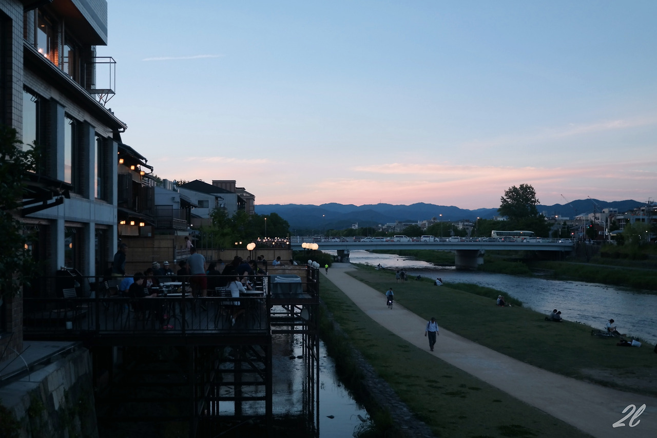 교토의 일상 그 자체인 카모강이 낯선 이방인인 나를 흔들어 놓기 시작한 건, 은은한 핑크빛 노을을 닮은 이로하스 한 모금부터였다.