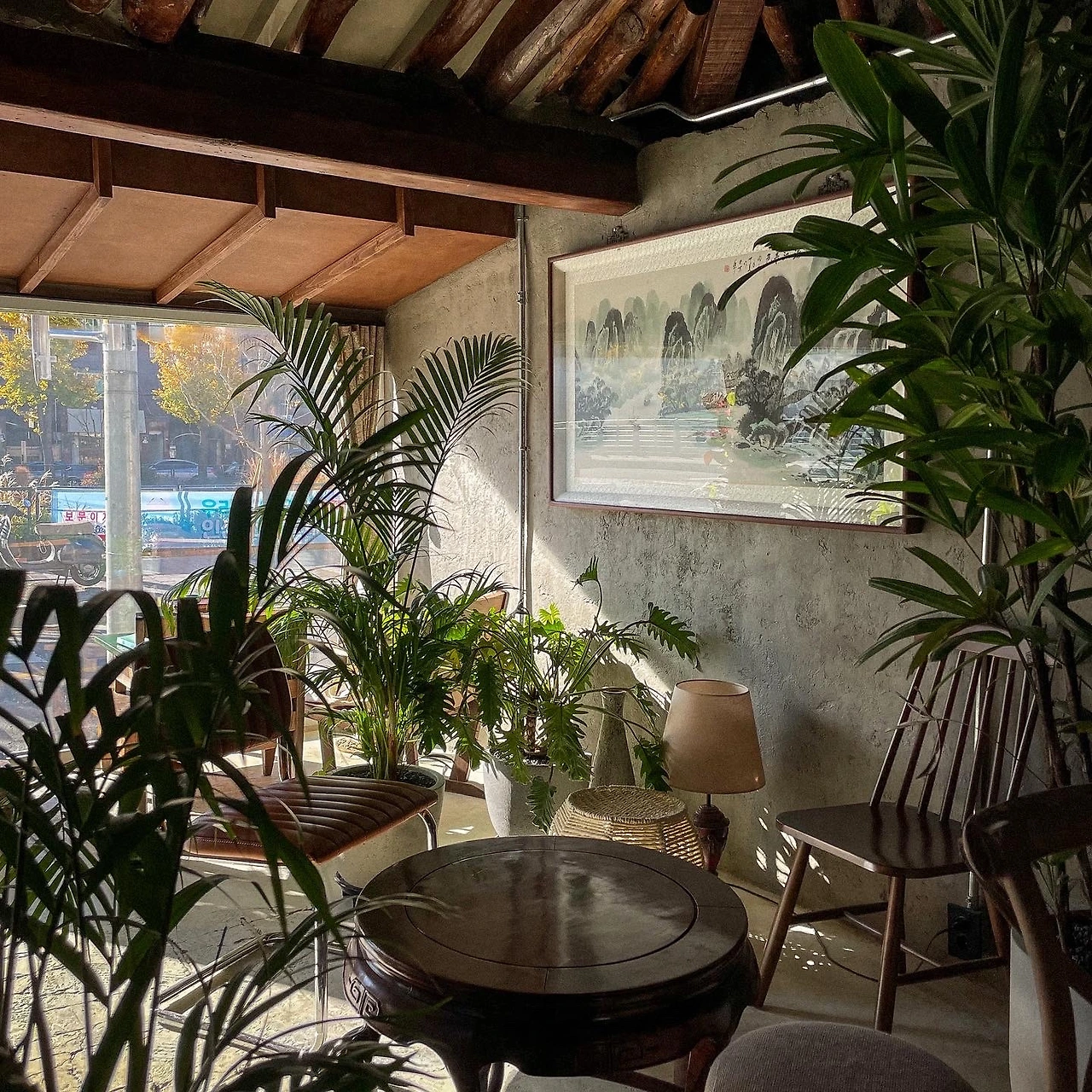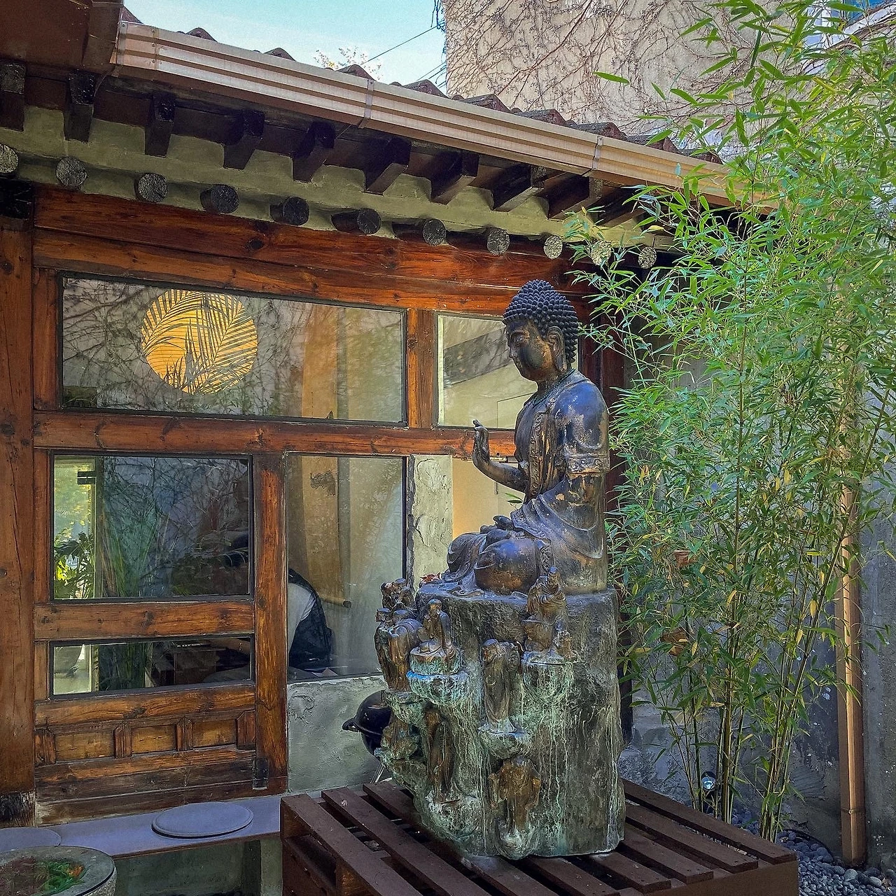 컨셉츄얼 끝판왕이다. 왠지 할머니 댁에서 본 것 같은 병풍과 동양화를 쭉 따라 안쪽으로 들어가 보면 마당 한가운데 태국 같은 데서 볼 법한 불상이 뜬금없이 놓여있다. 한국의 레트로와 동남아의 불교문화의 묘한 만남이다. 취향에 따라 호불호가 분명 갈릴 공간이지만, 나는 집이나 일터가 아닌 제3의 공간으로는 이렇게 색다르고 낯선 분위기를 찾아다니는 편이라 매우 만족스러웠다.