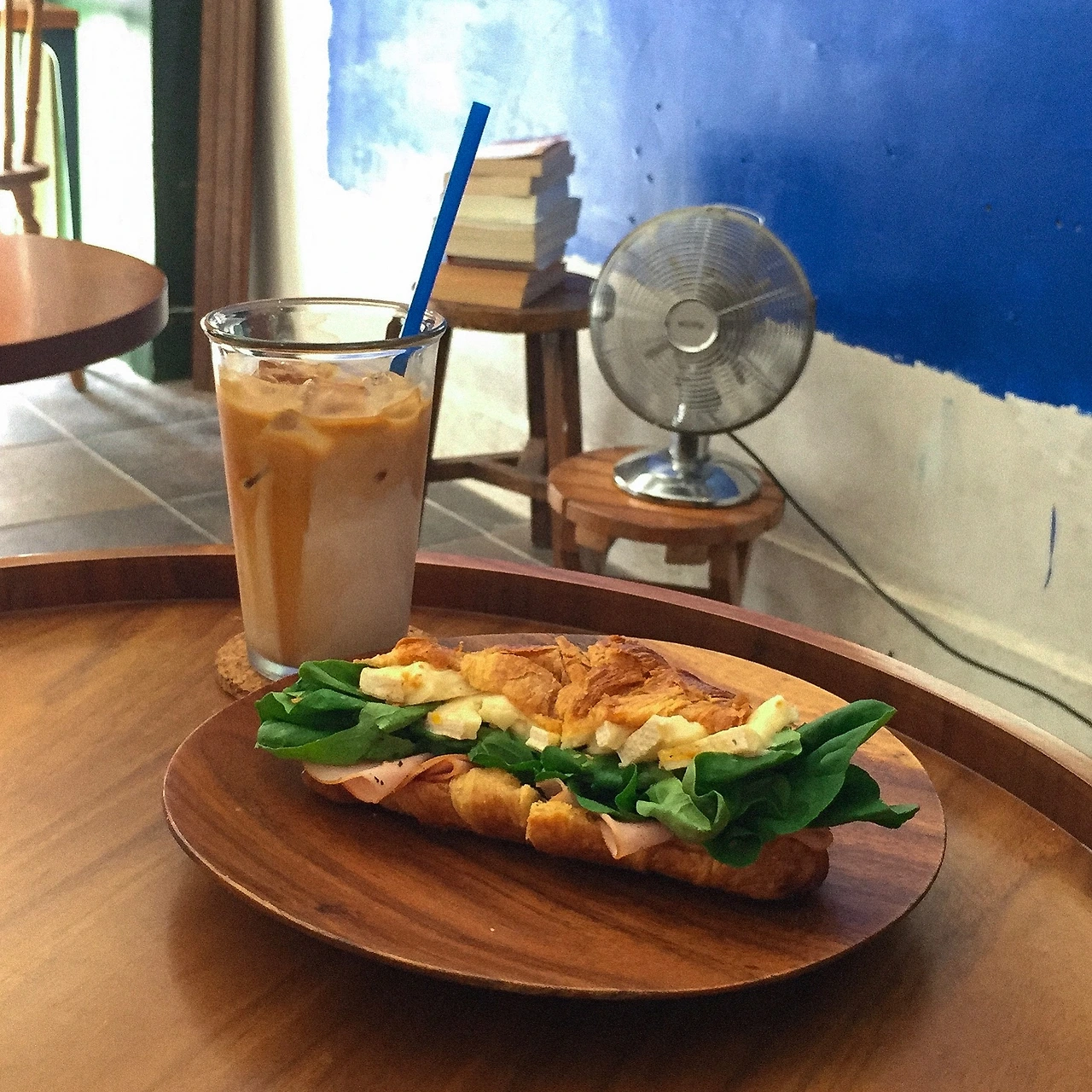소박하고 편안한 작은 동네 카페인데, 왠지 모르게 예술가의 터치가 묻어나는 곳 같다는 생각이 들었다. 아마 카페에서 쓰기에는 자칫 과감할 수 있는 진한 파란색으로 한쪽 벽면이 칠해져 있어 그렇게 느꼈나 보다. 좁은 공간을 미로처럼 200% 활용한 좌석 배치도 그렇다. 예사롭지 않은 곳임에는 분명하다.