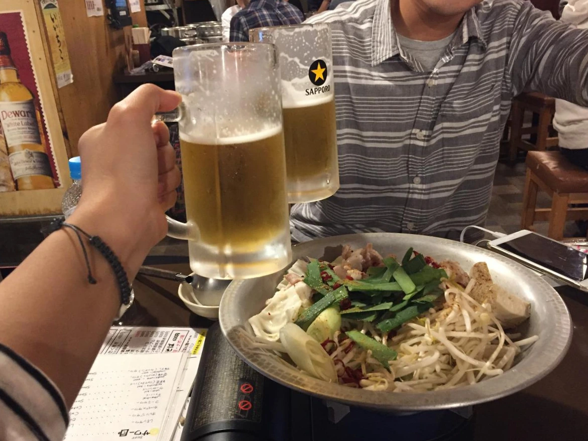도쿄 여행 중 생맥주가 100엔 밖에 안 한다길래 한번 찾아가 봤습니다. 현지인들이 삼삼오오 모여 왁자지껄 회포를 푸는 소박한 술집이었어요. 서울에서 가본 고오급 이자카야에 비해 더 좋았다거나 더 맛있다고 할 수는 없지만, 정말 현지인들의 일상 한 부분에 잠시 스며들어 경험해본 듯해 좋았어요. 사시미, 가라아게는 무난한 편이었지만 호르몬나베(곱창전골)는 맛있다고 감탄 연발하며 먹었습니다. 모든 술에 찰떡인 최고의 안주!