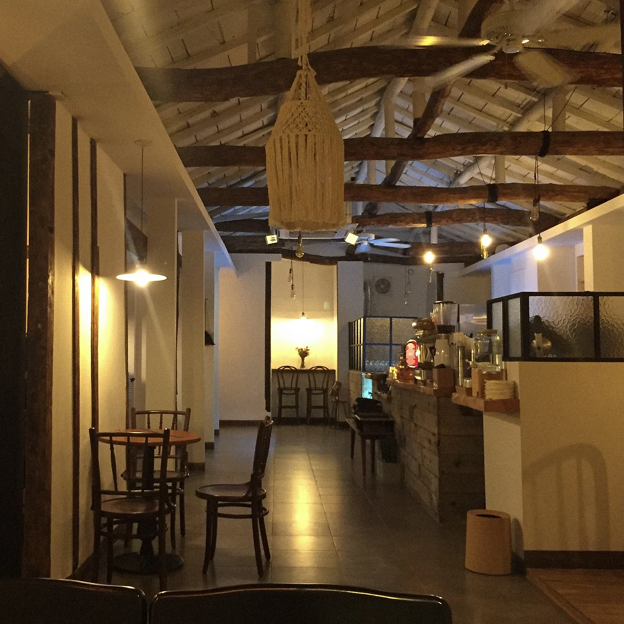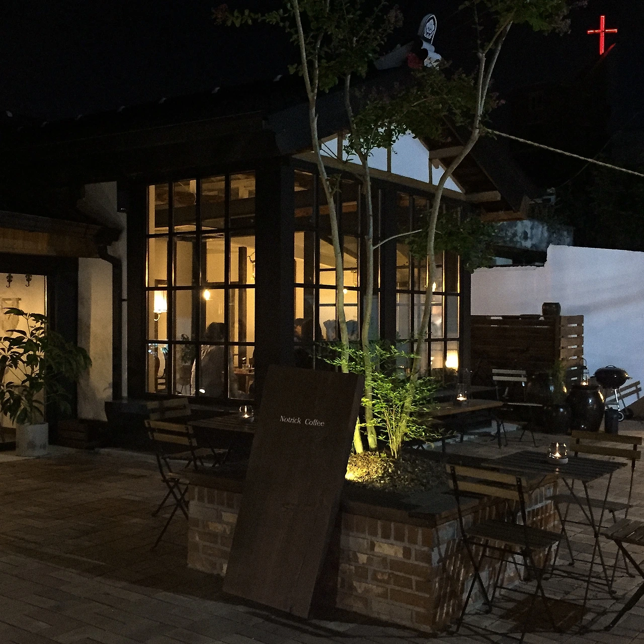 그 끝자락에서 코너를 돌면 나타나는 카페, 노트릭 커피는 한옥과 일본식 가옥 그 사이 어디쯤의 모양이었다. 내가 밤에 갔기 때문에 유독 차분한 느낌이었는데, 햇살이 비치는 낮에 가면 따뜻한 느낌이 아니었을까 상상하며.