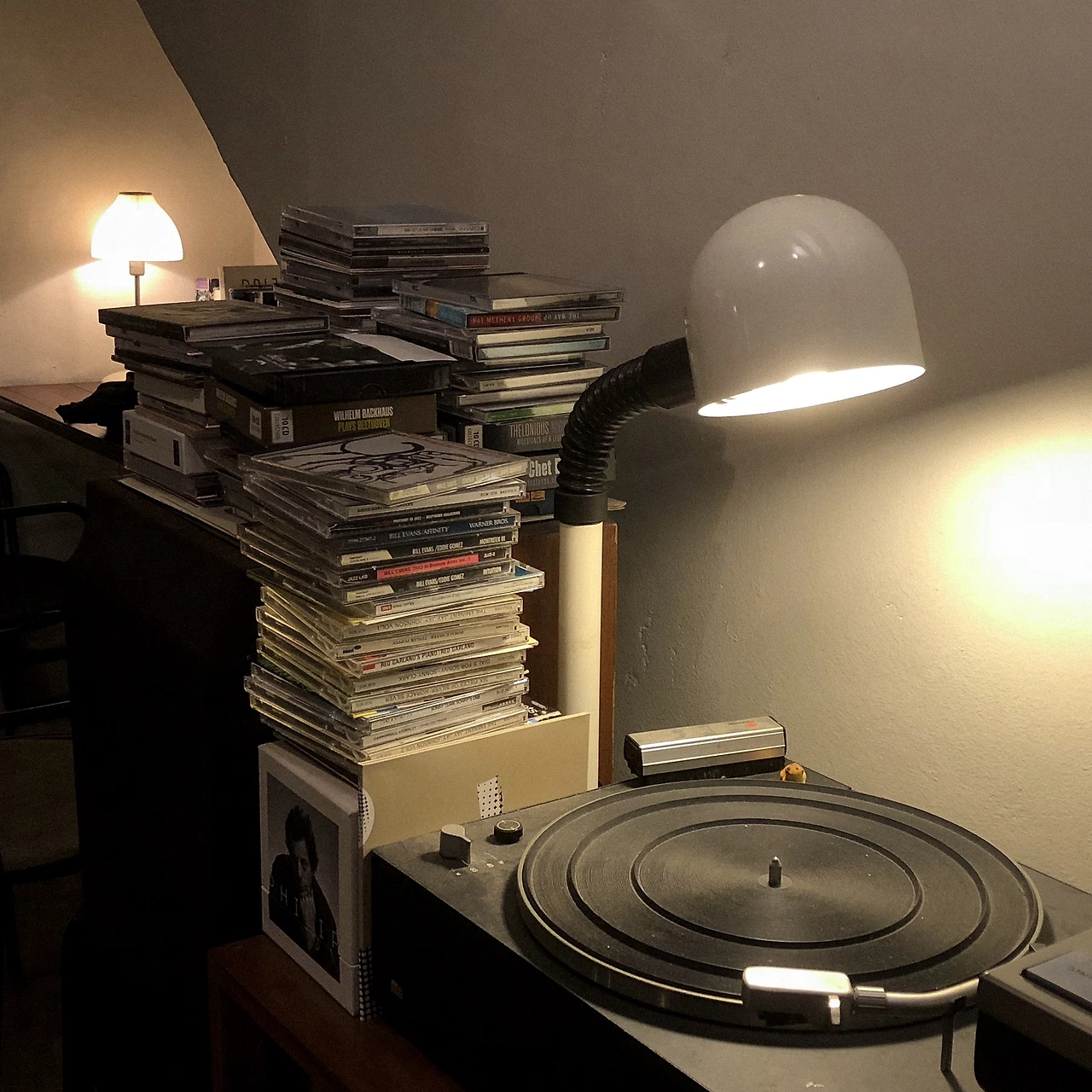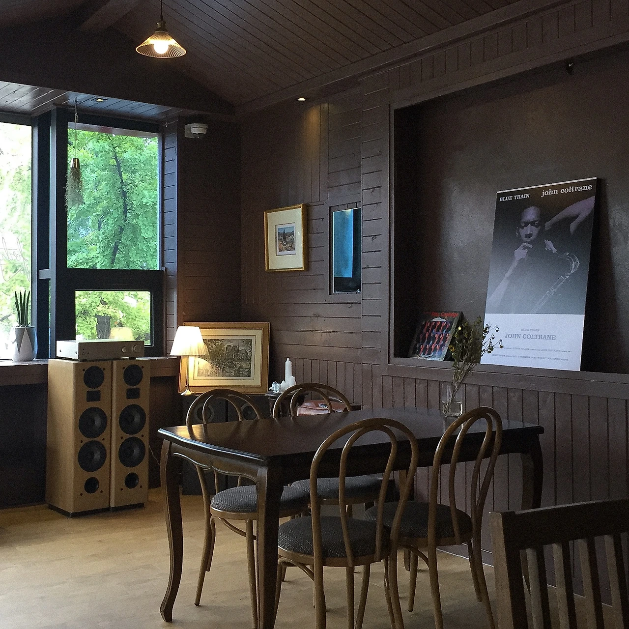 카페 1층은 하얗고 트렌디한데, 2층은 까맣고 클래식한 정반대의 분위기를 풍긴다. 꽤 좋아 보이는 스피커에서 옛날 미국 남부 스타일의 재즈가 흘러나오고, LP와 포스터가 진열되어 있다. 한편으로는 창밖으로 한옥 구조물이 내다 보이는 게 인상적이었다. 재즈와 한옥이라.