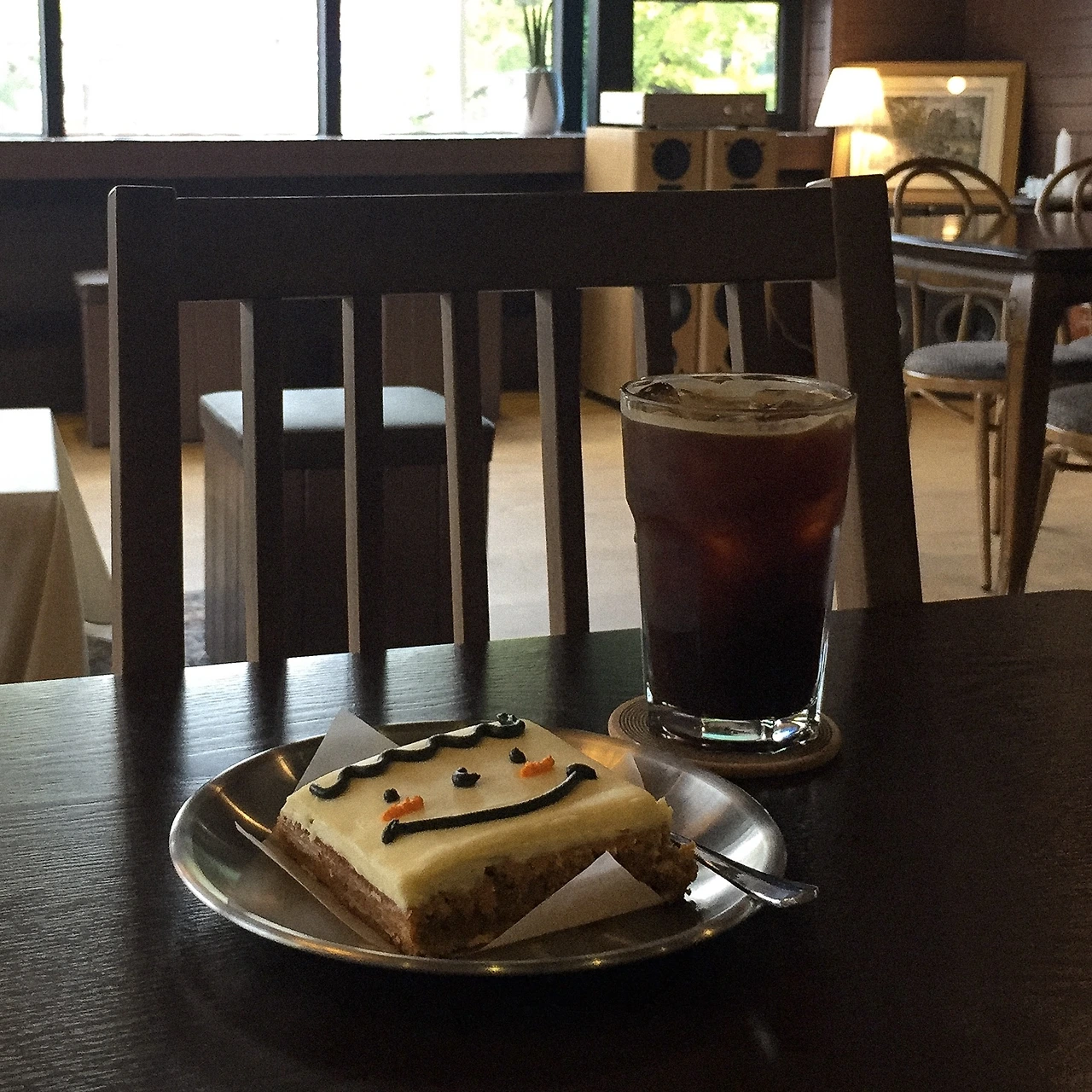 어쩌다 보니 전주에 와있었다. 특별히 관광에 흥미는 없었고 카페나 몇 개 가봐야지 싶었는데, 그중에서도 포티파이브커피를 첫 카페로 선택한 건 순전히 저 당근케이크의 비주얼 때문이었다. 나를 보고 활짝 웃는 저 뽀짝이를 어찌 거부할 수 있을까. (맛있었지만 눈코입 부분 프로스팅을 떼어먹을 땐 사실 조금 소름 돋았다.)