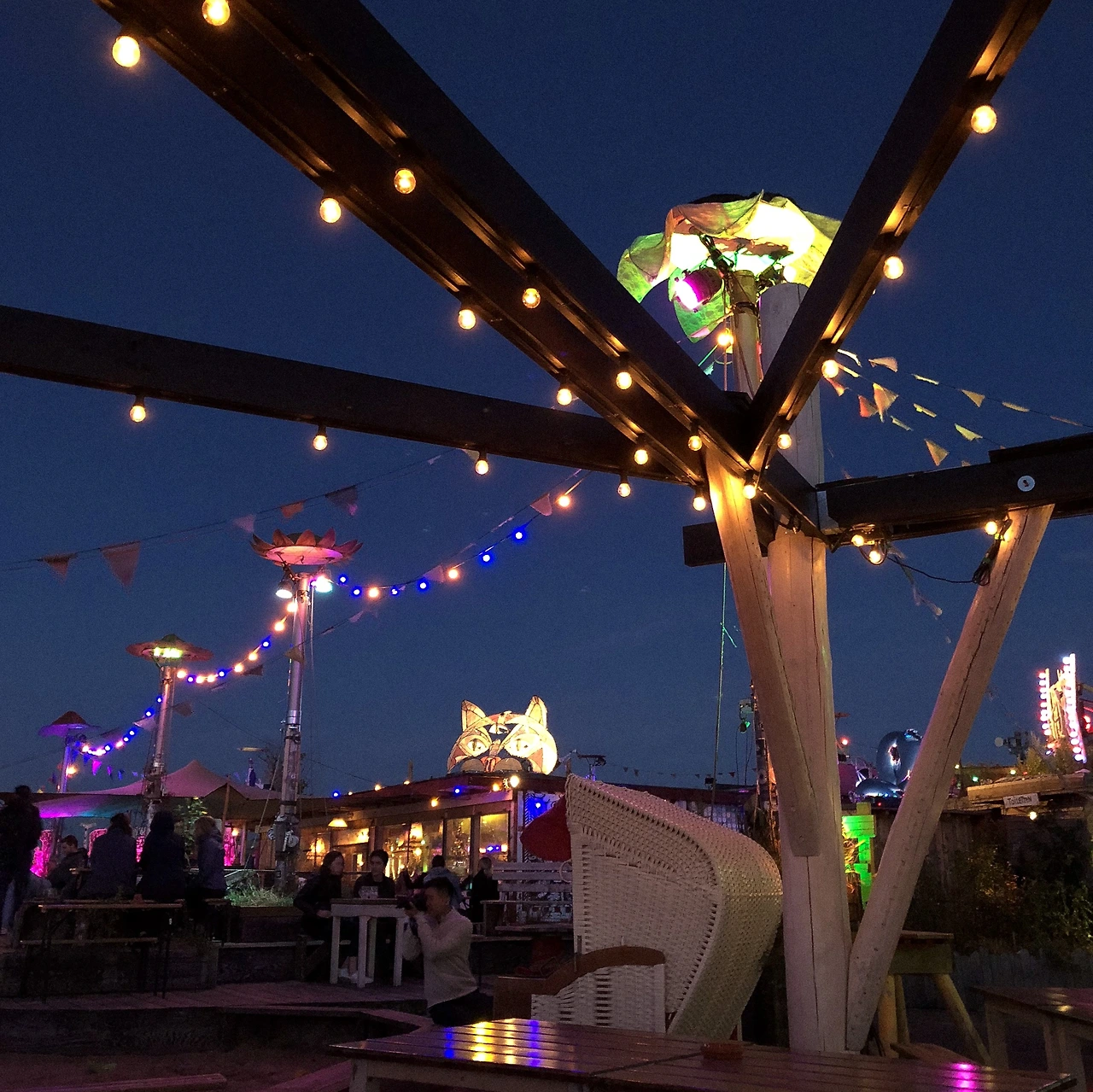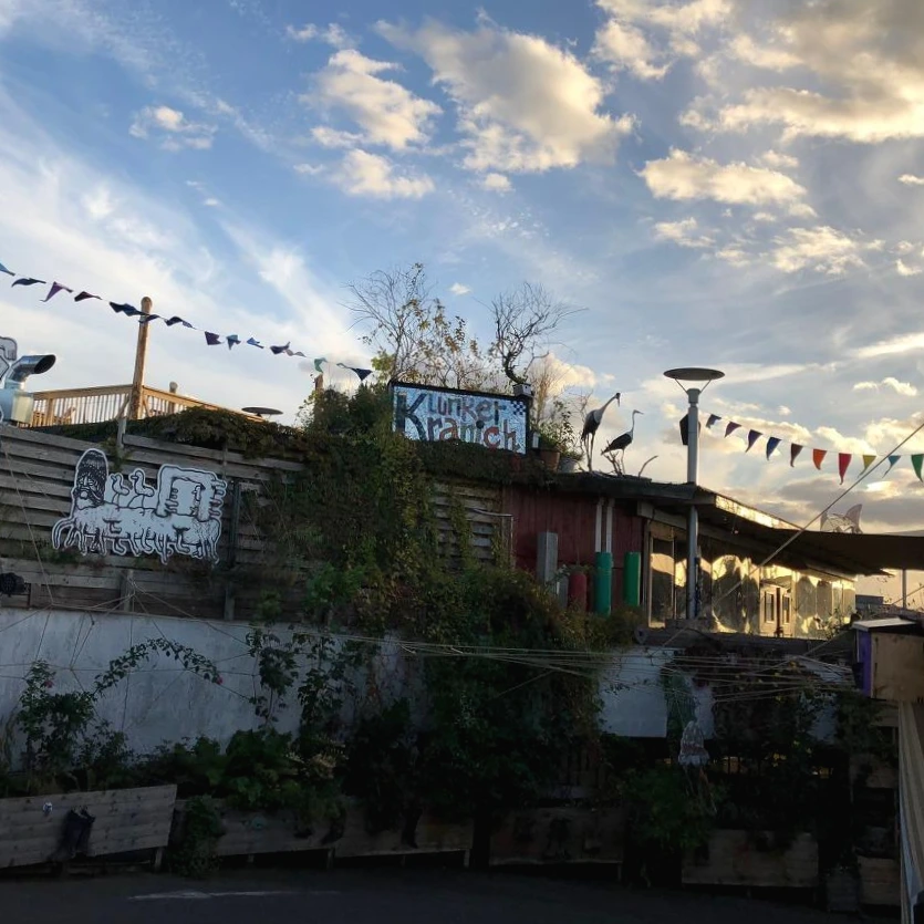 저녁에 꼭 가보고 싶었던 곳이 있었는데 혼자 가기엔 애매해서 동행을 구했다. 노이쾰른에 있는 루프탑 바. 사진으로 봤을 때 노이쾰른에 저렇게 높은 건물이 있을까 싶었는데, 아니나 다를까 쇼핑몰 지상주차장 맨 꼭대기 층에, 어두운 창고나 있을 법한 특이한 위치에 있었다.